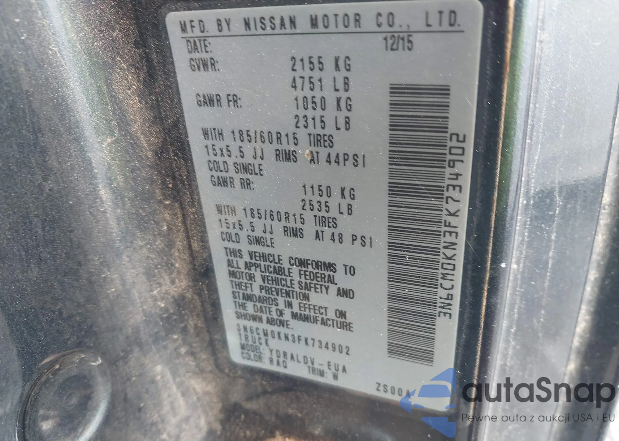 LOT: 42929569 VIN: 3N6CM0KN3FK734902