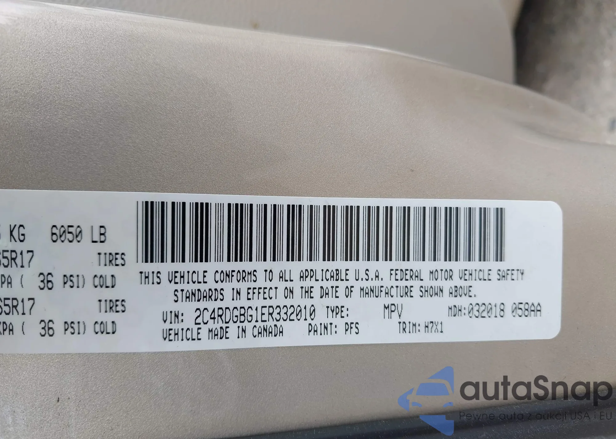 LOT: 42657005 VIN: 2C4RDGBG1ER332010