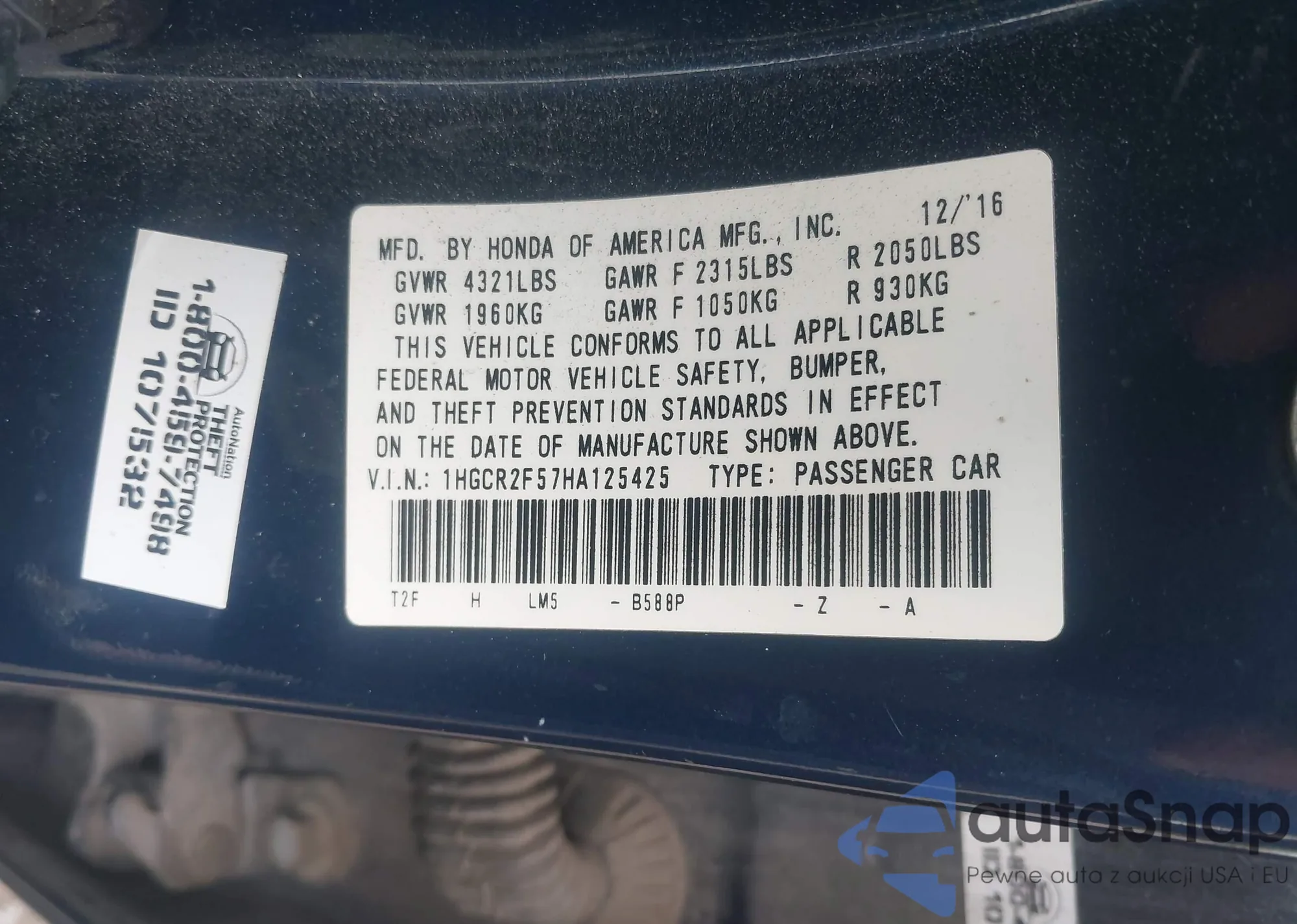 • VIN 1HGCR2F57HA125425