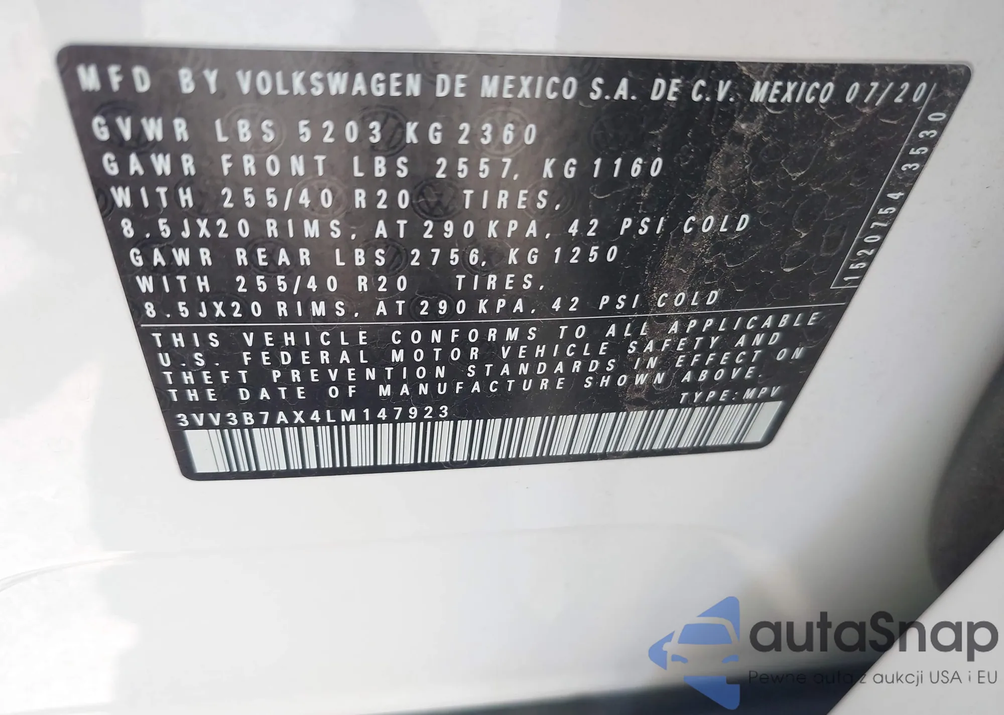 • VIN 3VV3B7AX4LM147923