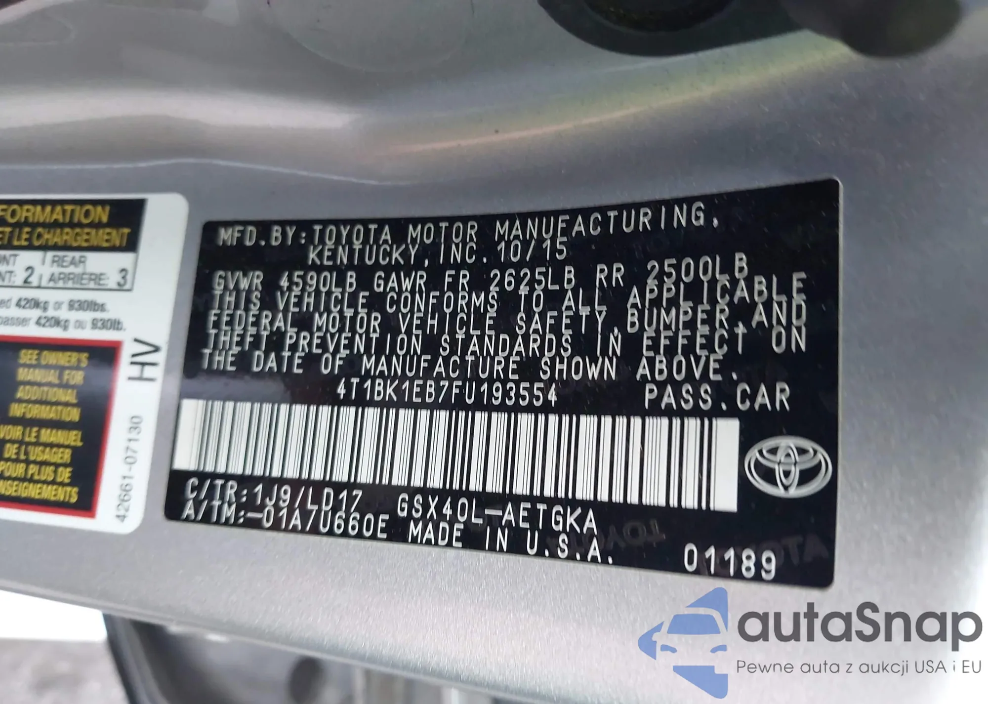 LOT: 42903617 VIN: 4T1BK1EB7FU193554