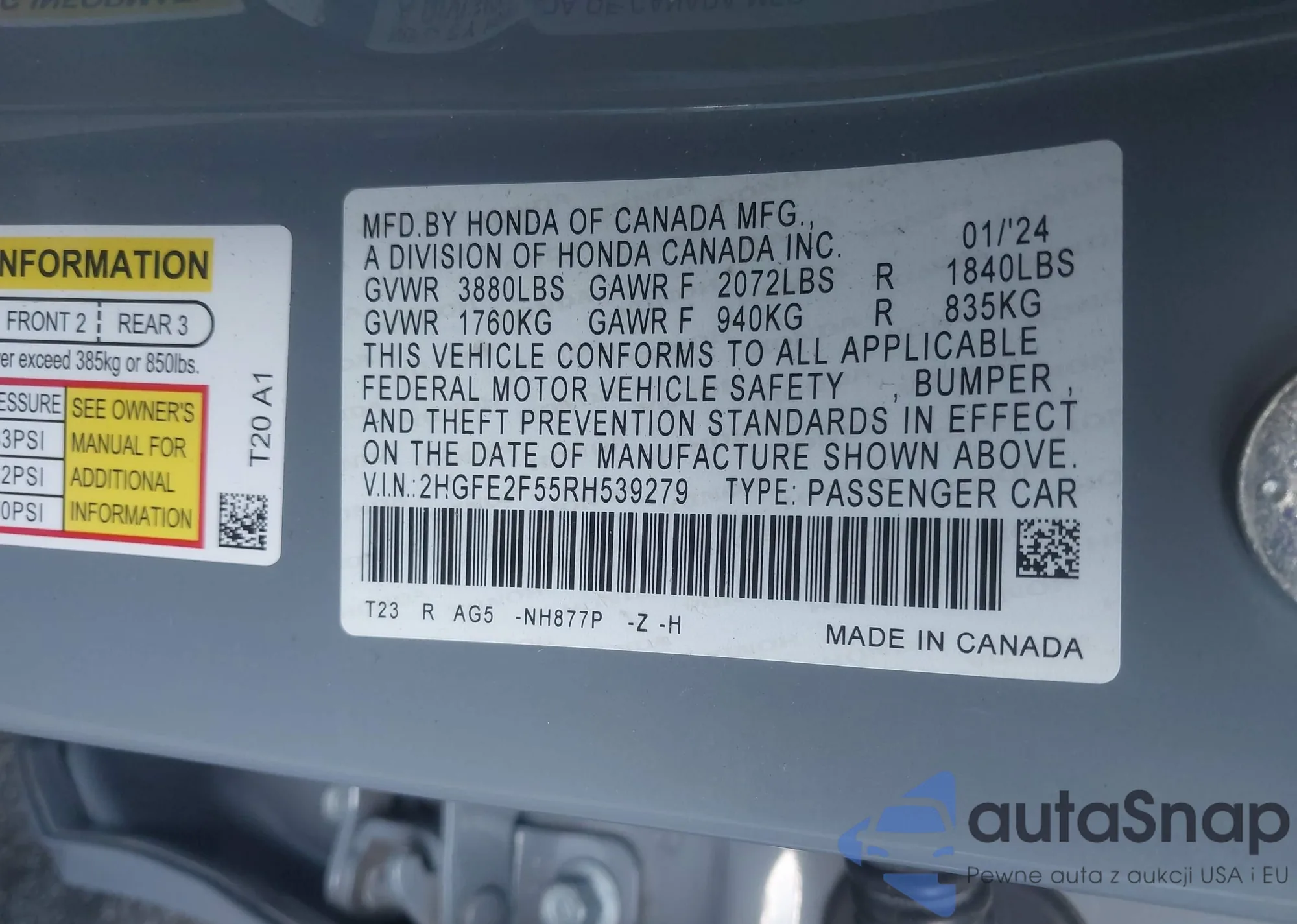 LOT: 42949594 VIN: 2HGFE2F55RH539279