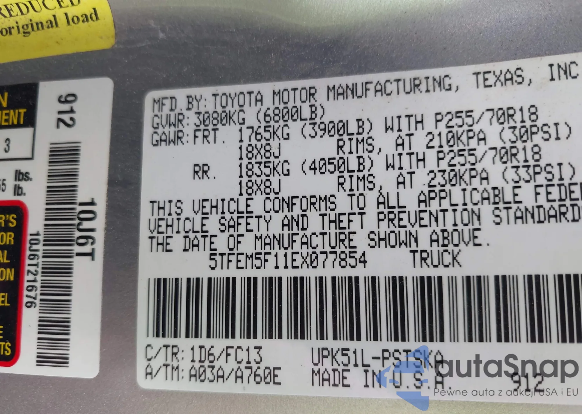 LOT: 43198354 VIN: 5TFEM5F11EX077854