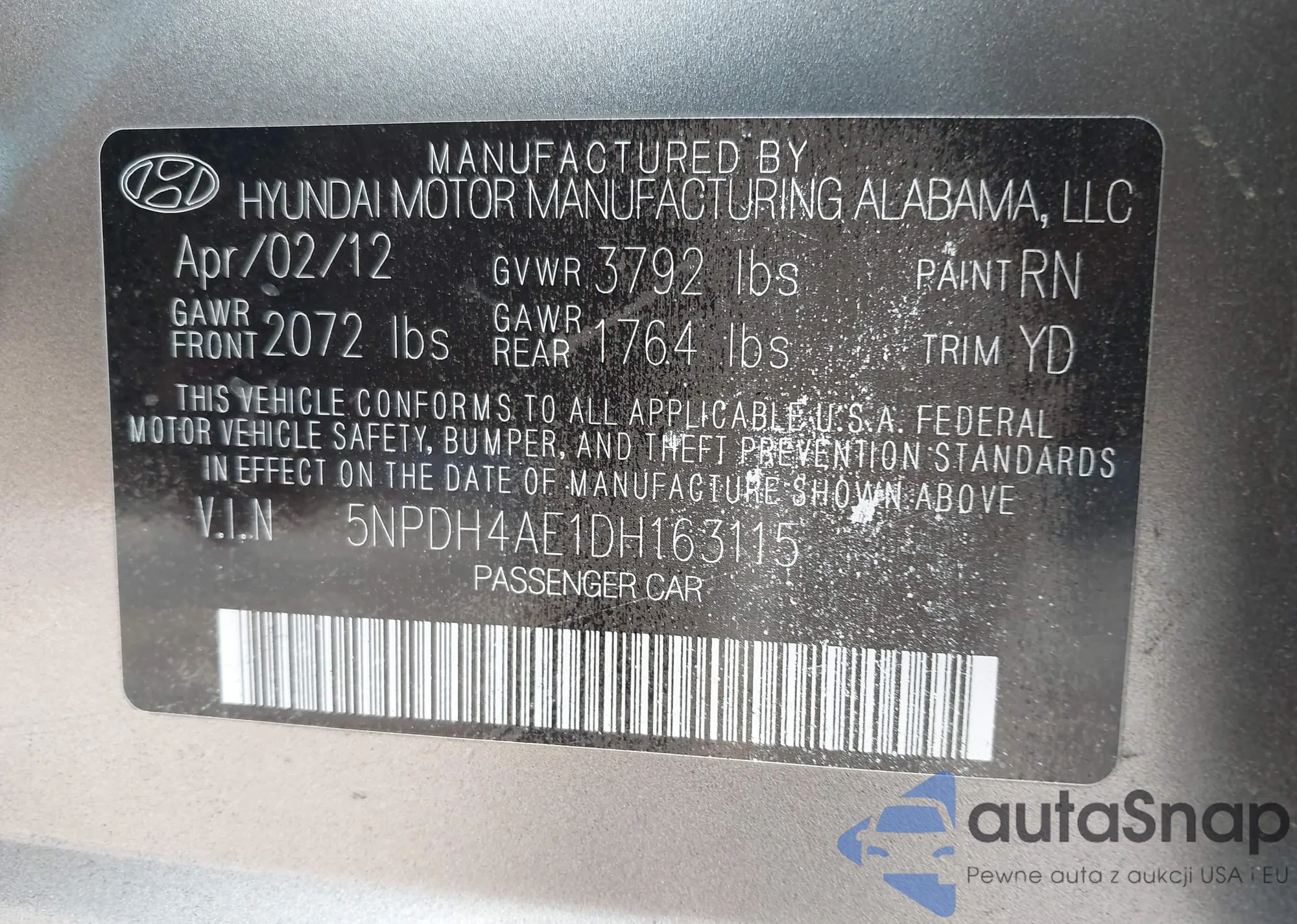 LOT: 43187655 VIN: 1N4AL3AP1FN391640
