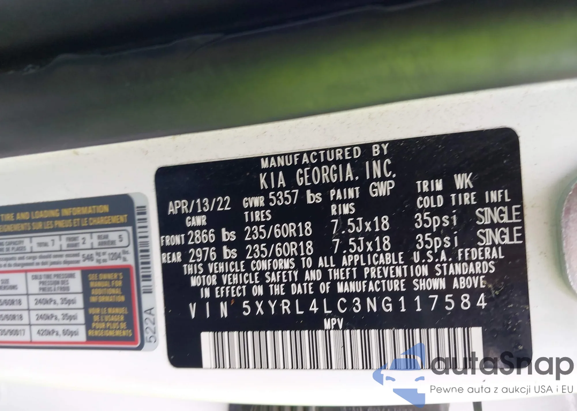 LOT: 43292367 VIN: 5XYRL4LC3NG117584
