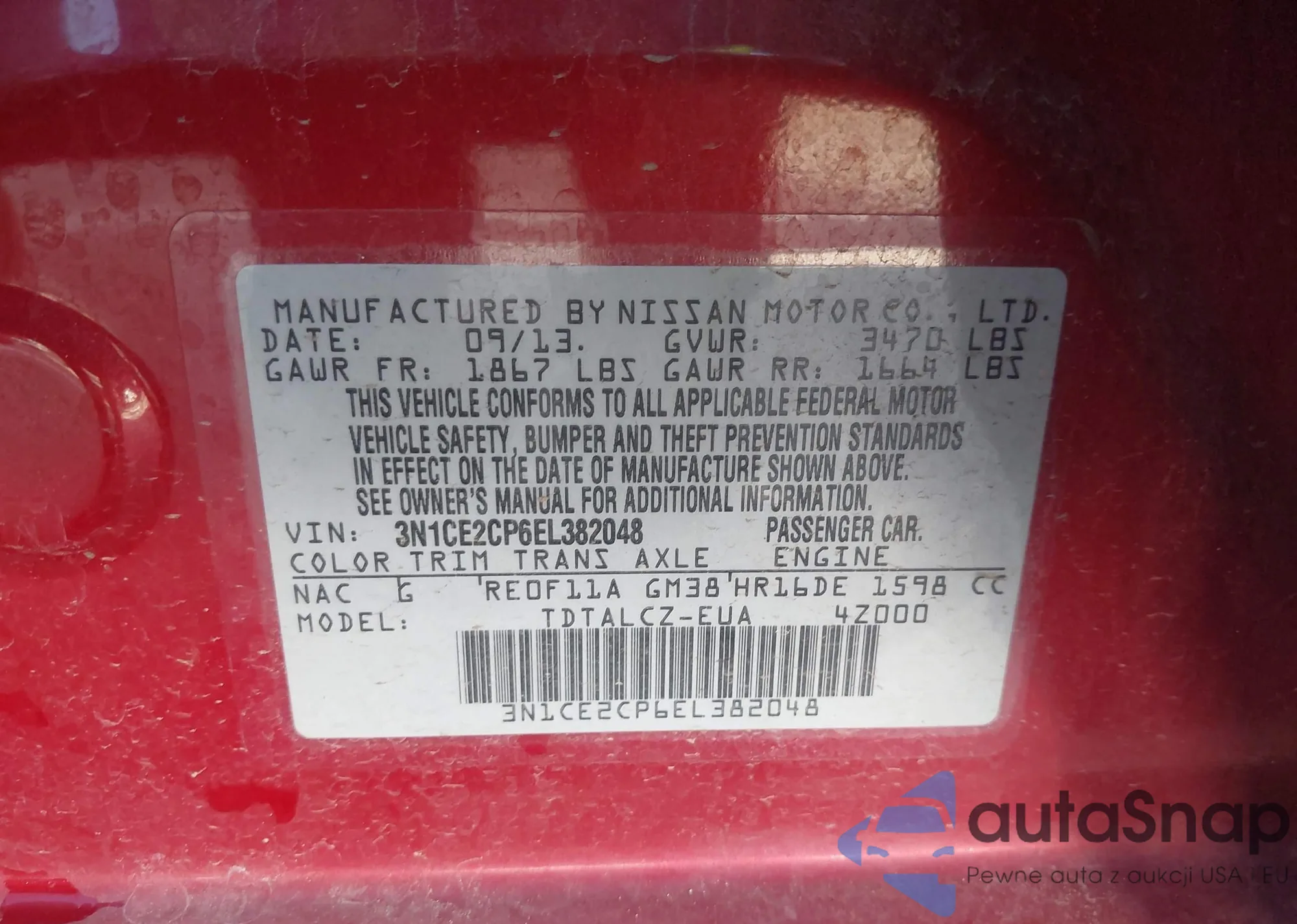 LOT: 43321425 VIN: JNKAY01F18M652922