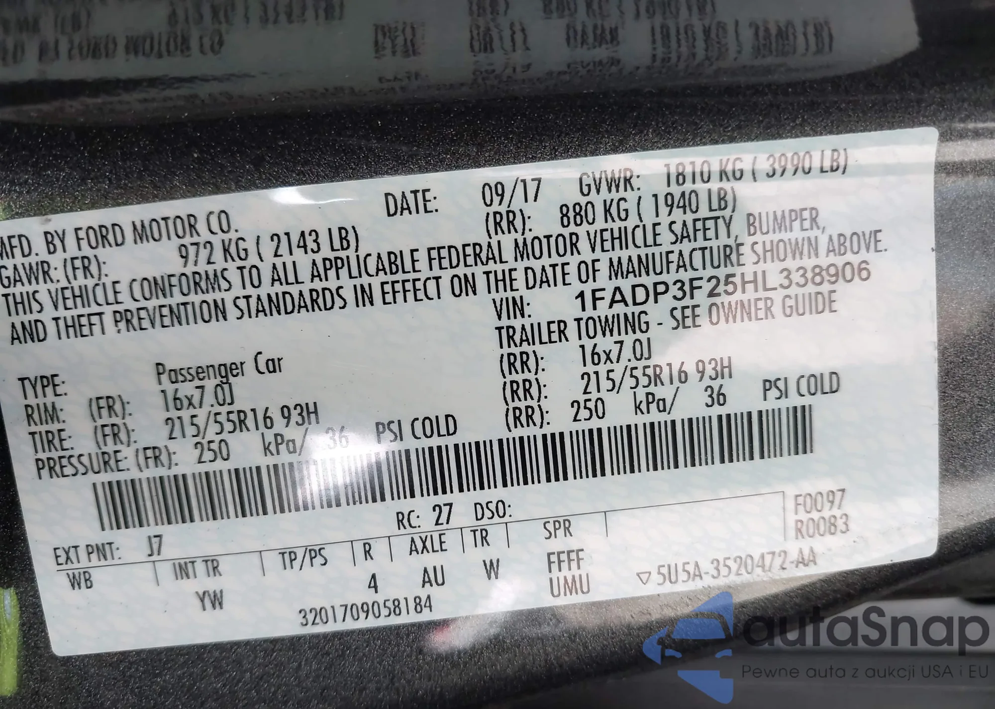 LOT: 43380075 VIN: 3FAFP31N55R157599