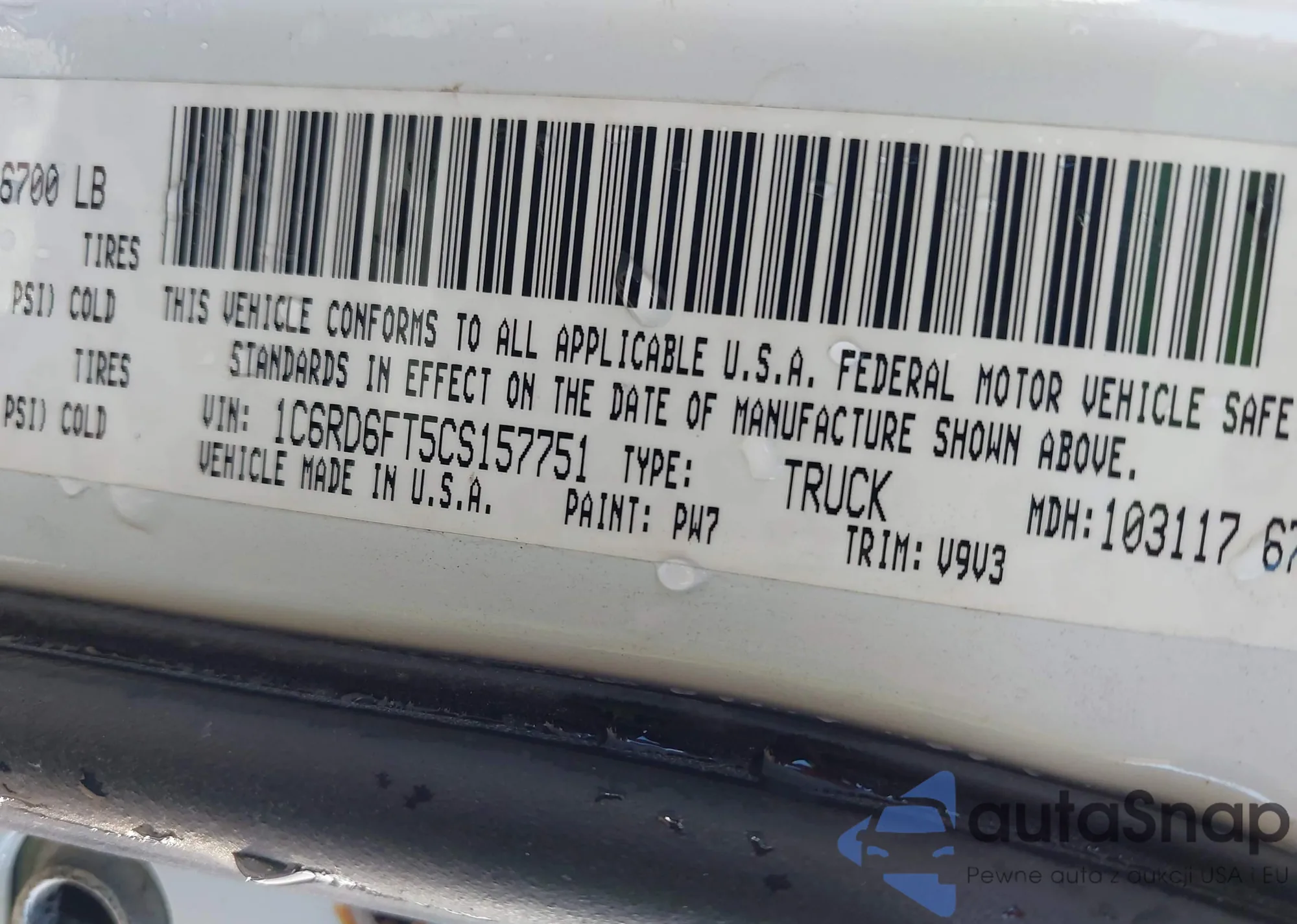 LOT: 43055656 VIN: 1HGCP2F68CA087338