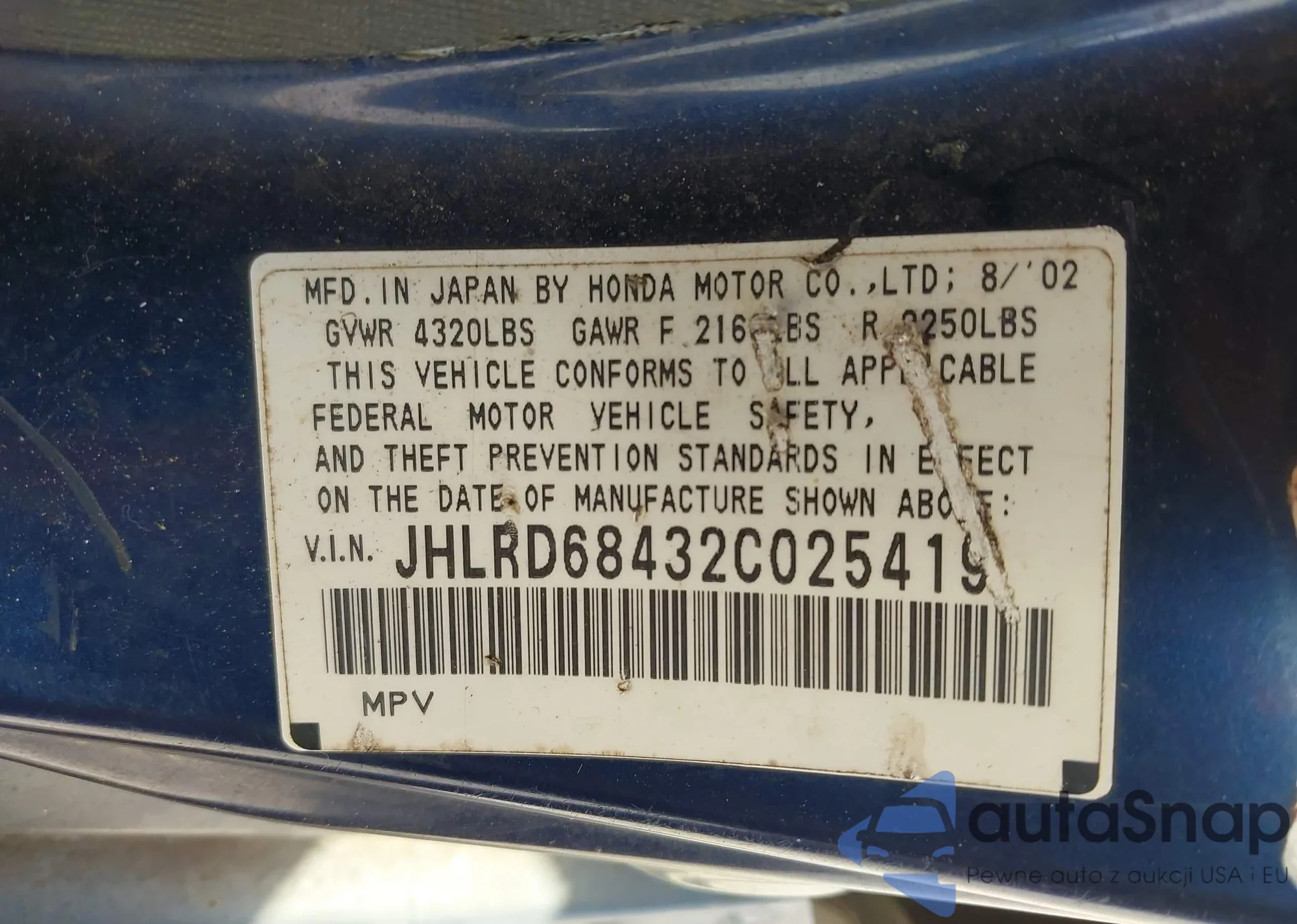 • VIN JHLRD68432C025419