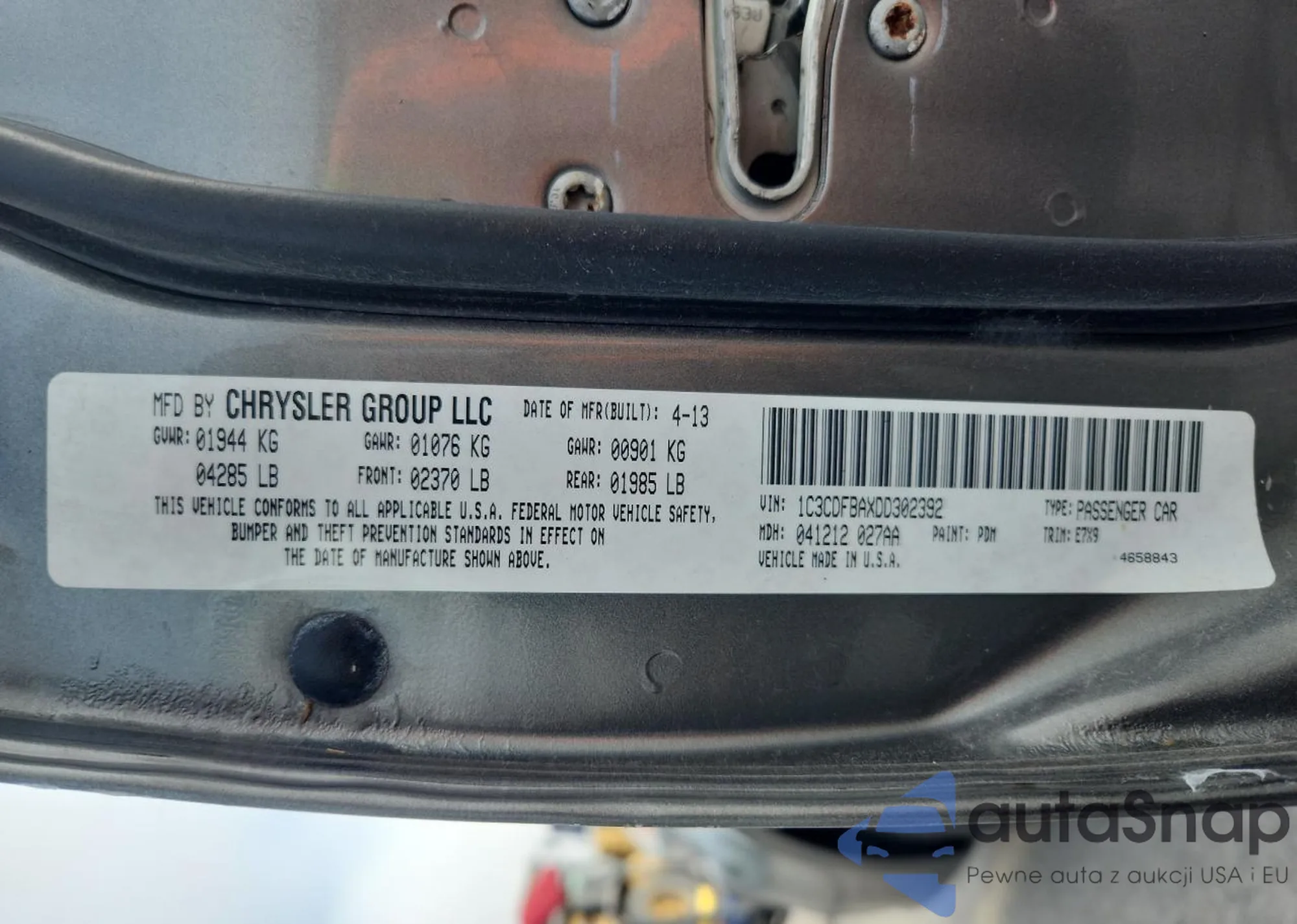 • VIN 1C3CDFBAXDD302392