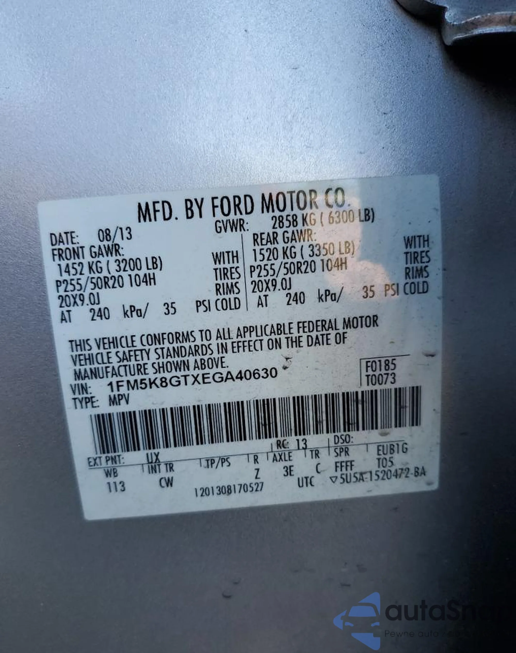 • VIN 1FM5K8GTXEGA40630