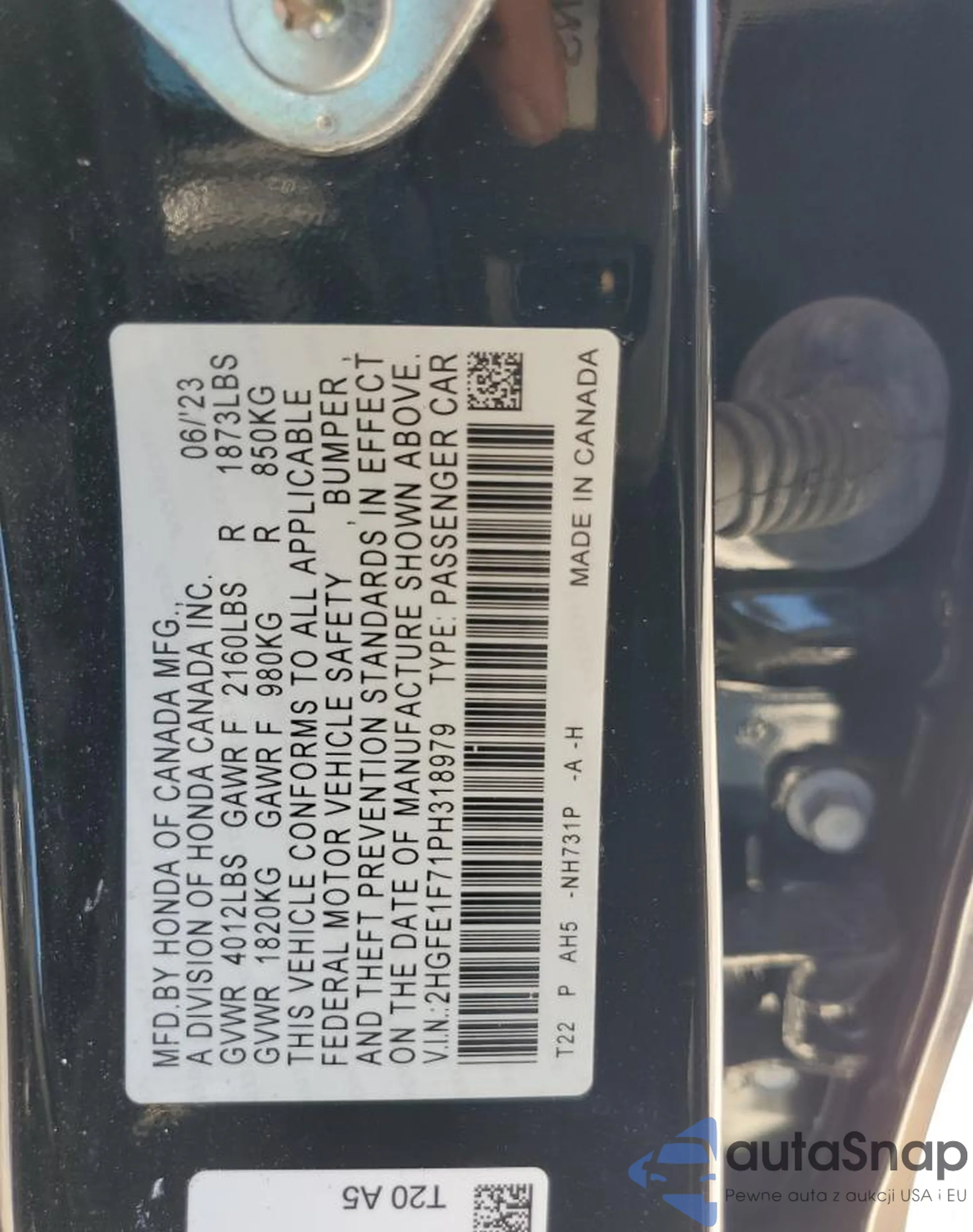 LOT: 80737715 VIN: 2HGFE1F71PH318979