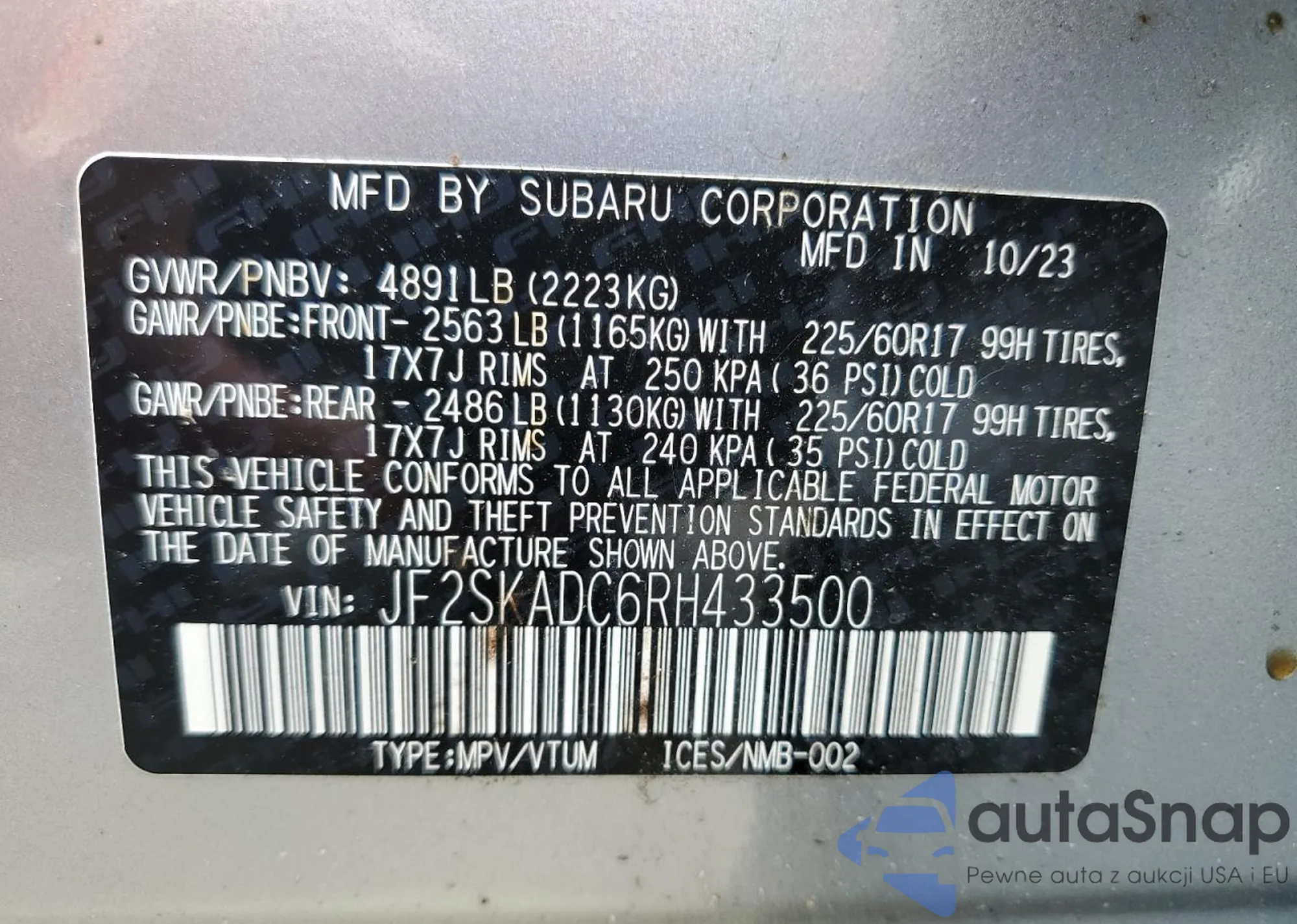• VIN JF2SKADC6RH433500