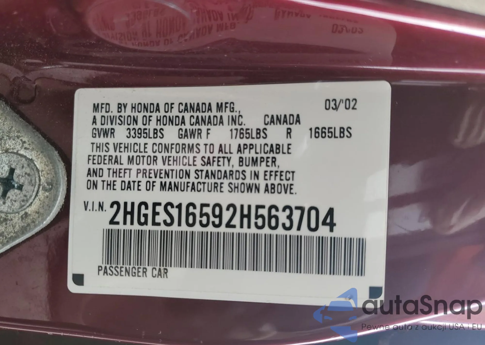 • VIN 5J8TB4H3XFL025512