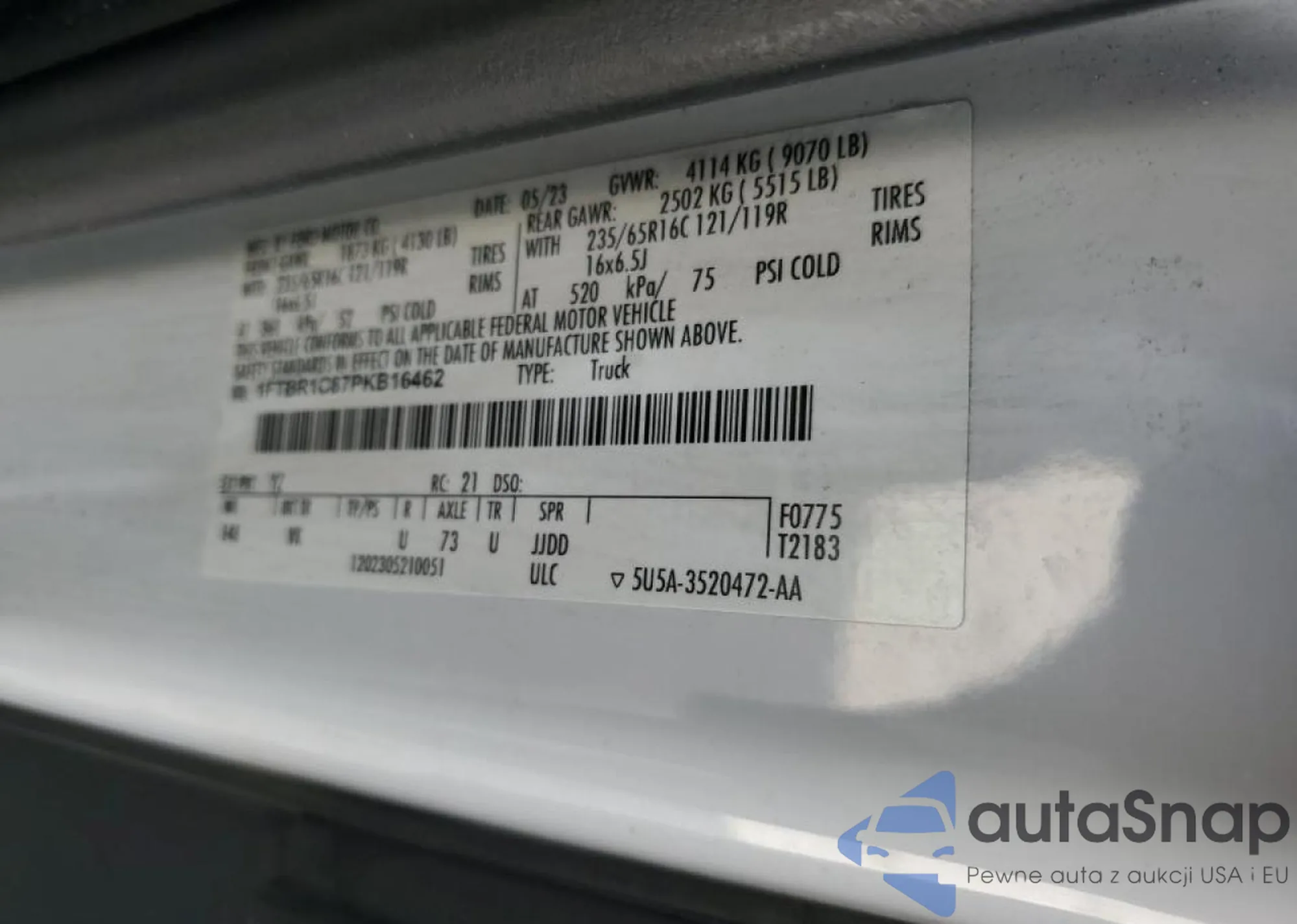 LOT: 81035945 VIN: 1FTRW07392KD17143