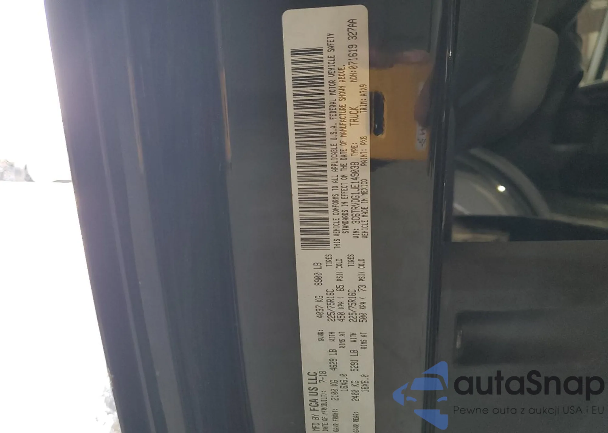 • VIN 3C6TRVDG1JE149038