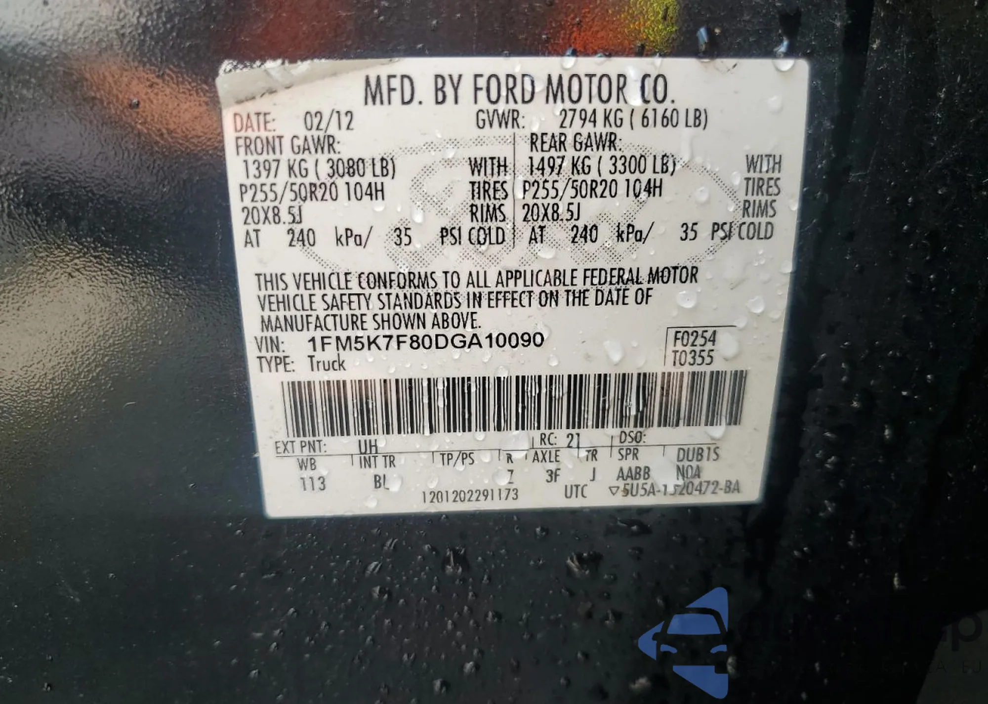 • VIN 1FM5K7F80DGA10090