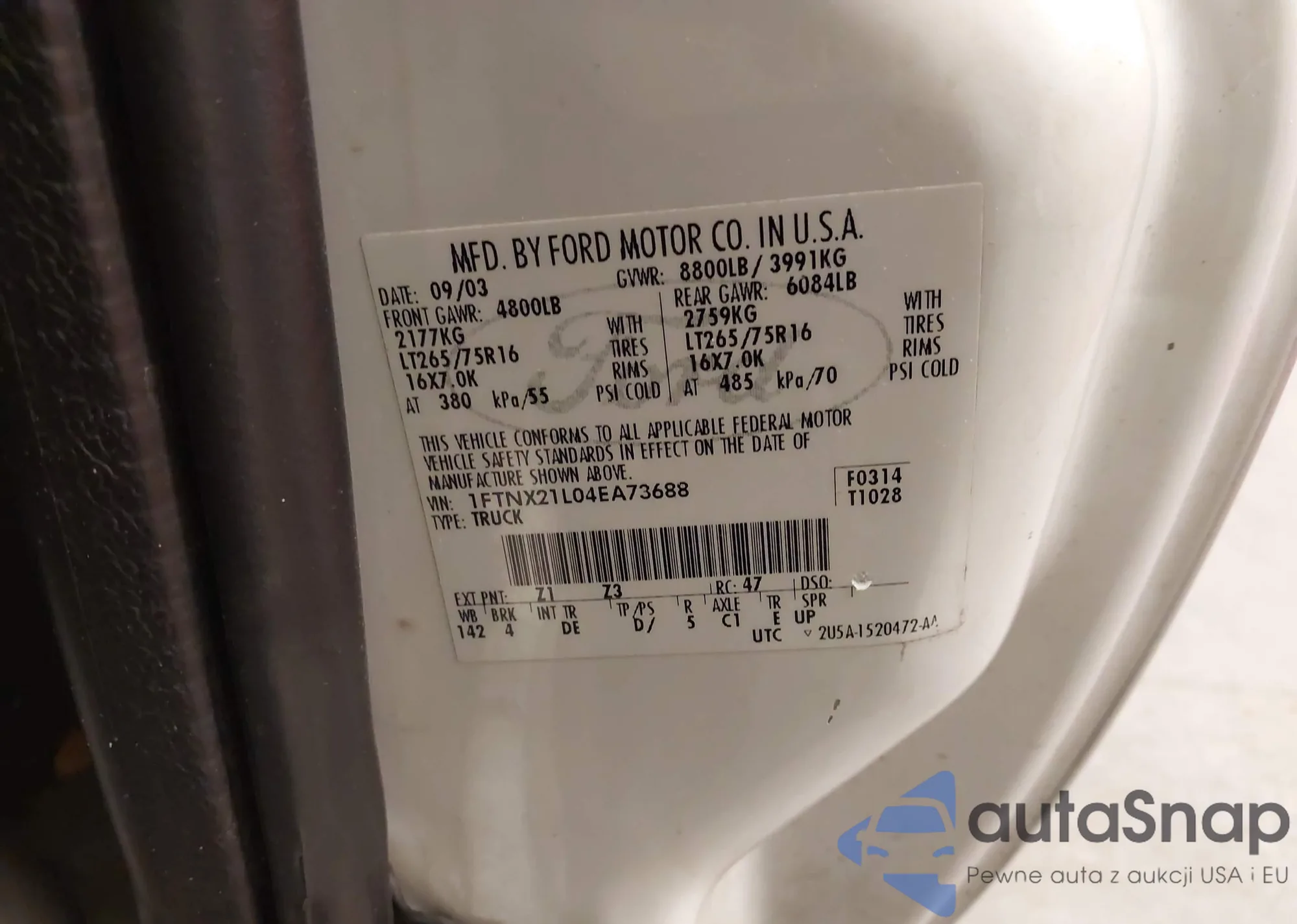 • VIN 1FTEE14Y1SHC16540