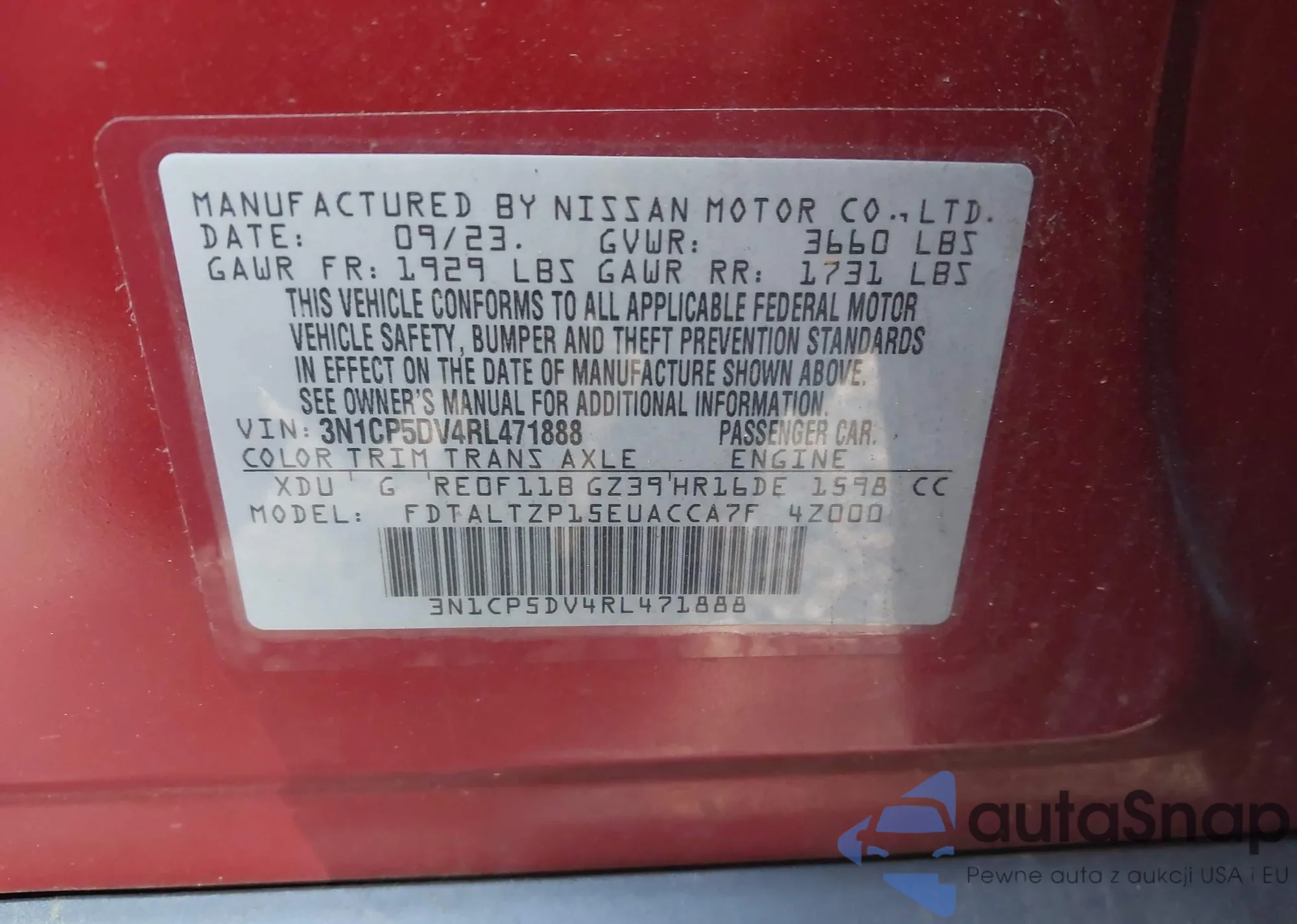 LOT: 43018127 VIN: 3N1CP5DV4RL471888
