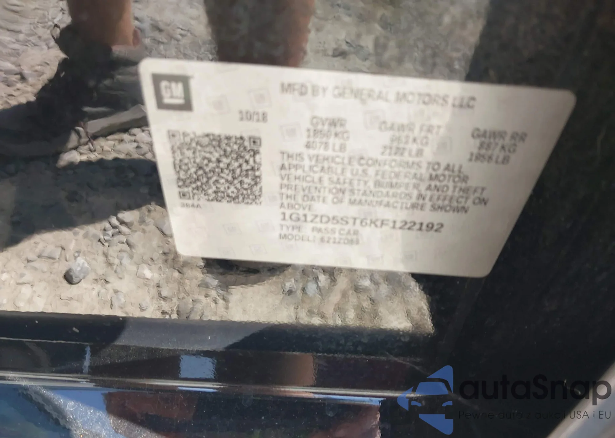 • VIN 1G1ZD5ST6KF122192
