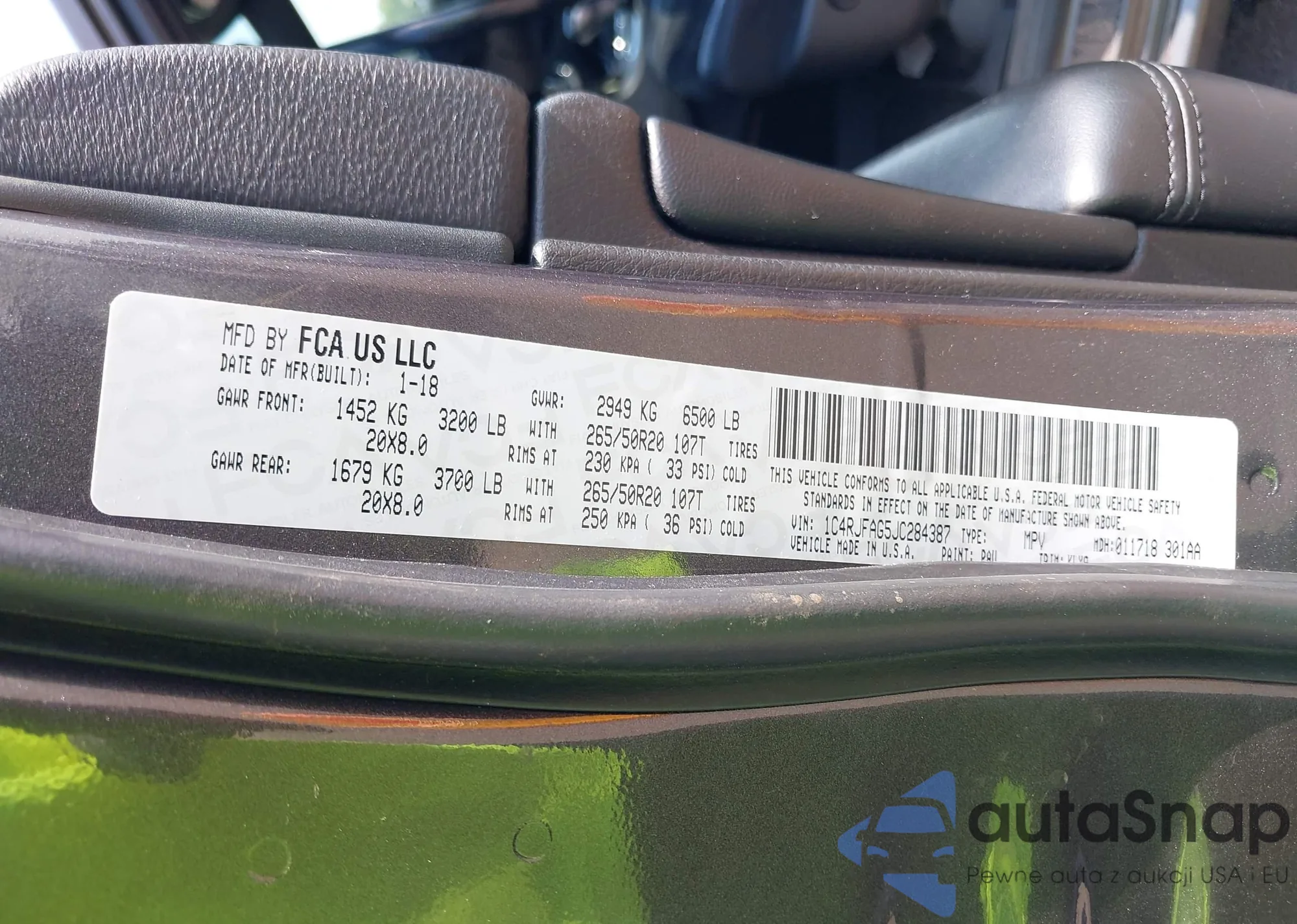 • VIN 1C4RJFAG5JC284387