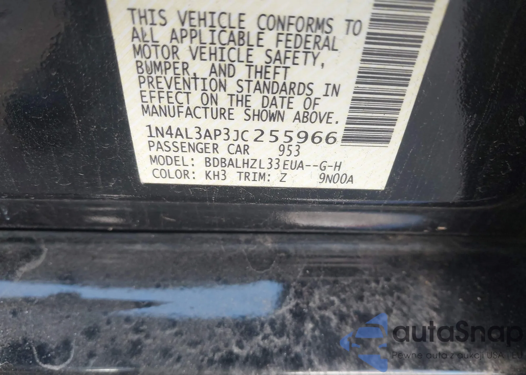 LOT: 43137739 VIN: 1N4AL3AP3JC255966