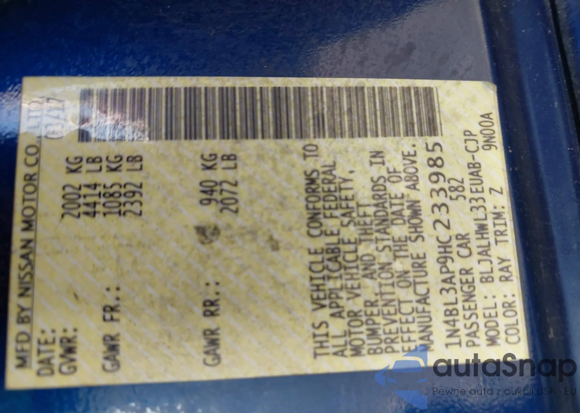 • VIN 1N4CL2AP8AC146163