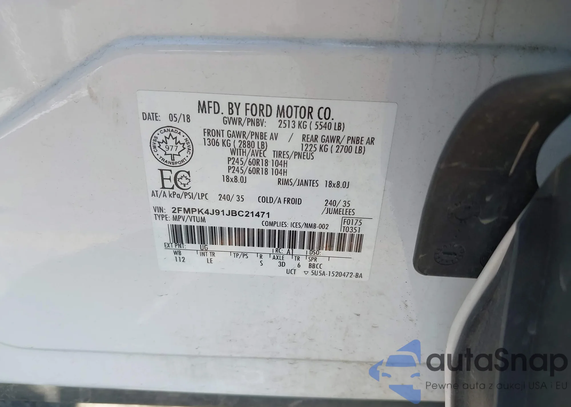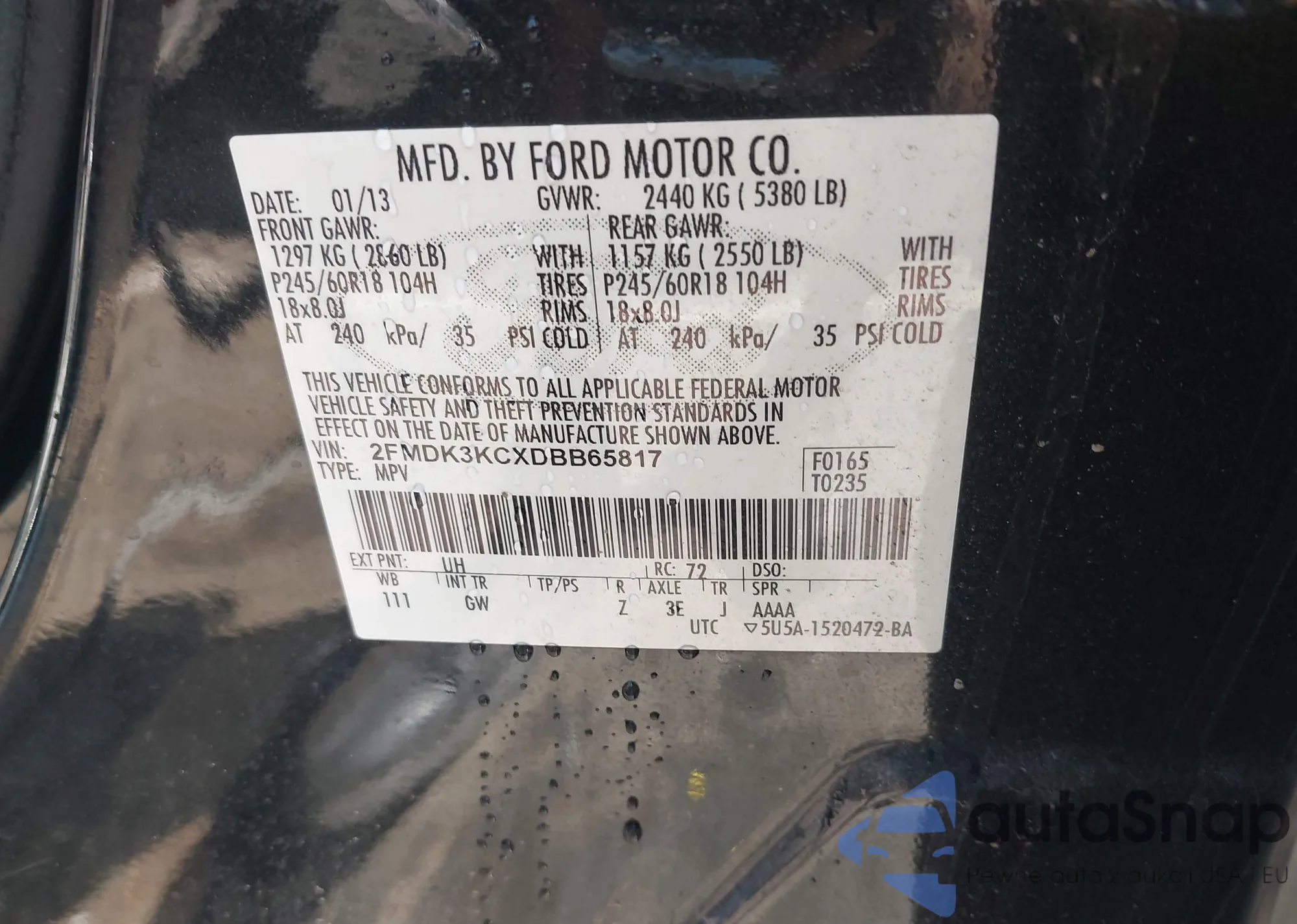 • VIN 2FMDK3KCXDBB65817