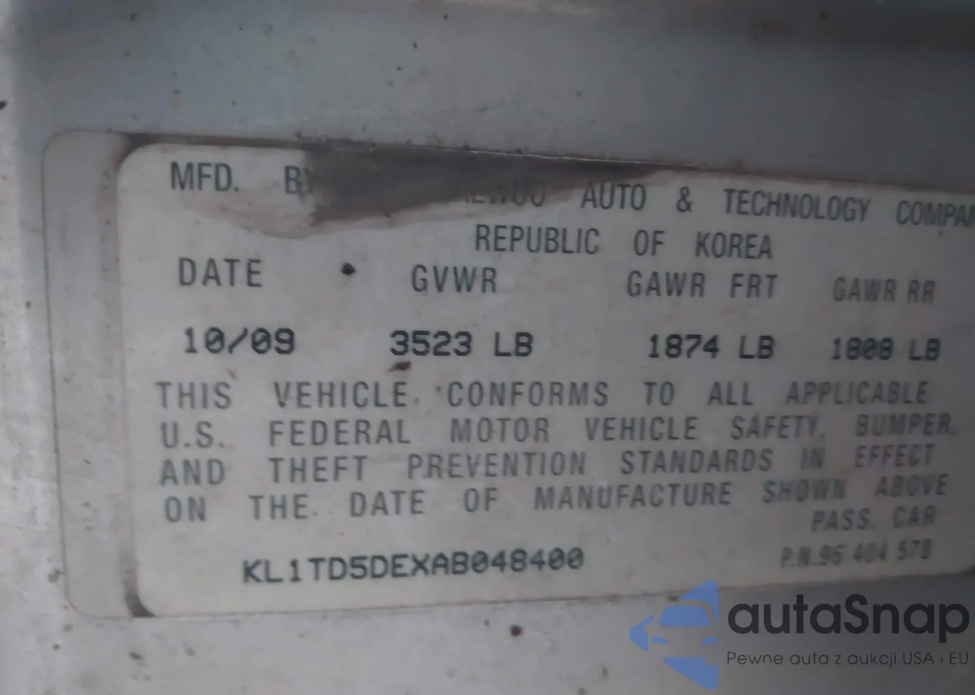 • VIN KL1TD5DEXAB048400