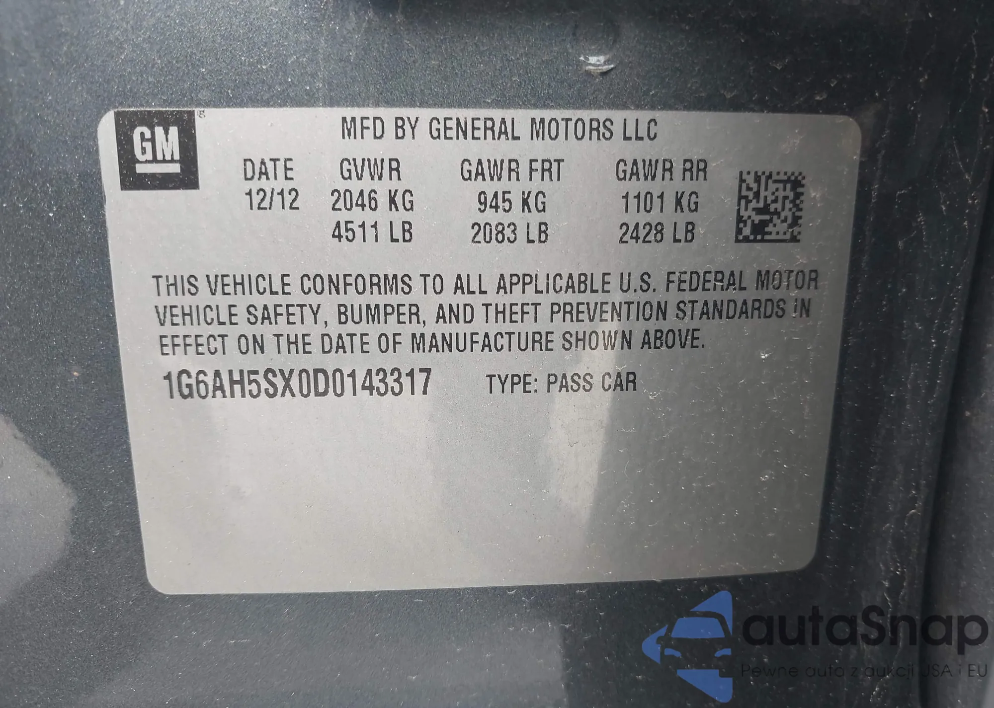 • VIN 1G6AH5SX0D0143317