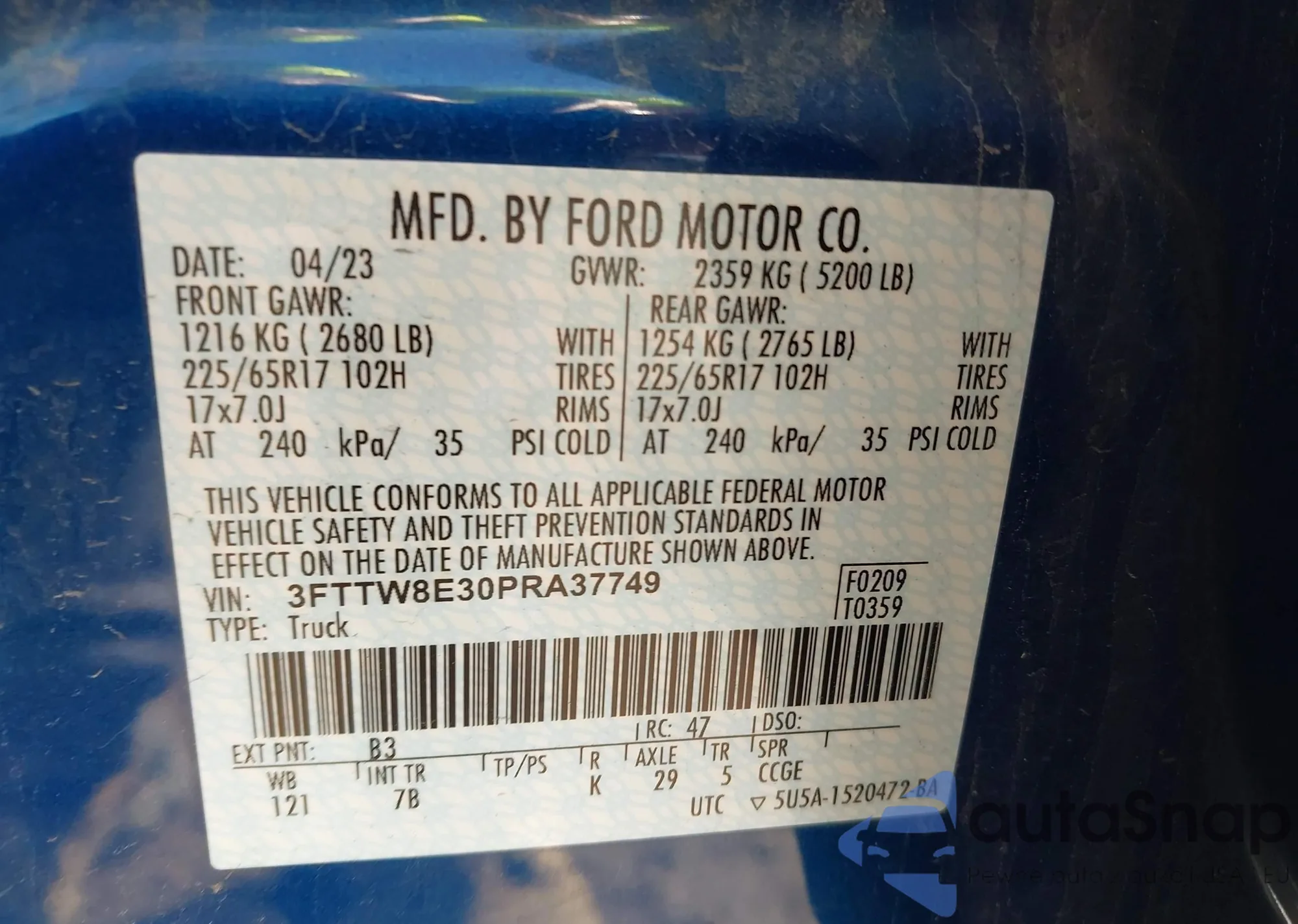 LOT: 43334021 VIN: 3FTTW8E30PRA37749
