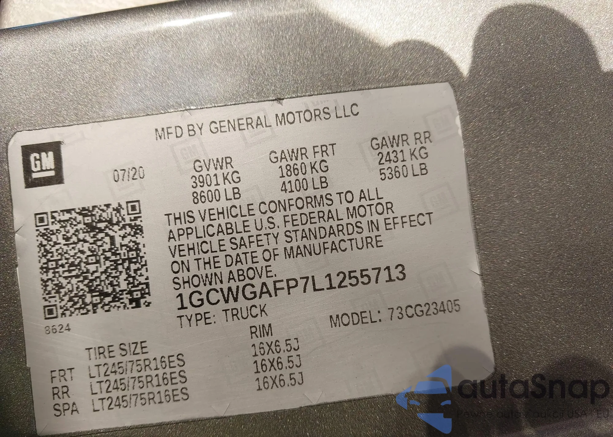 • VIN 1GCWGAFP7L1255713