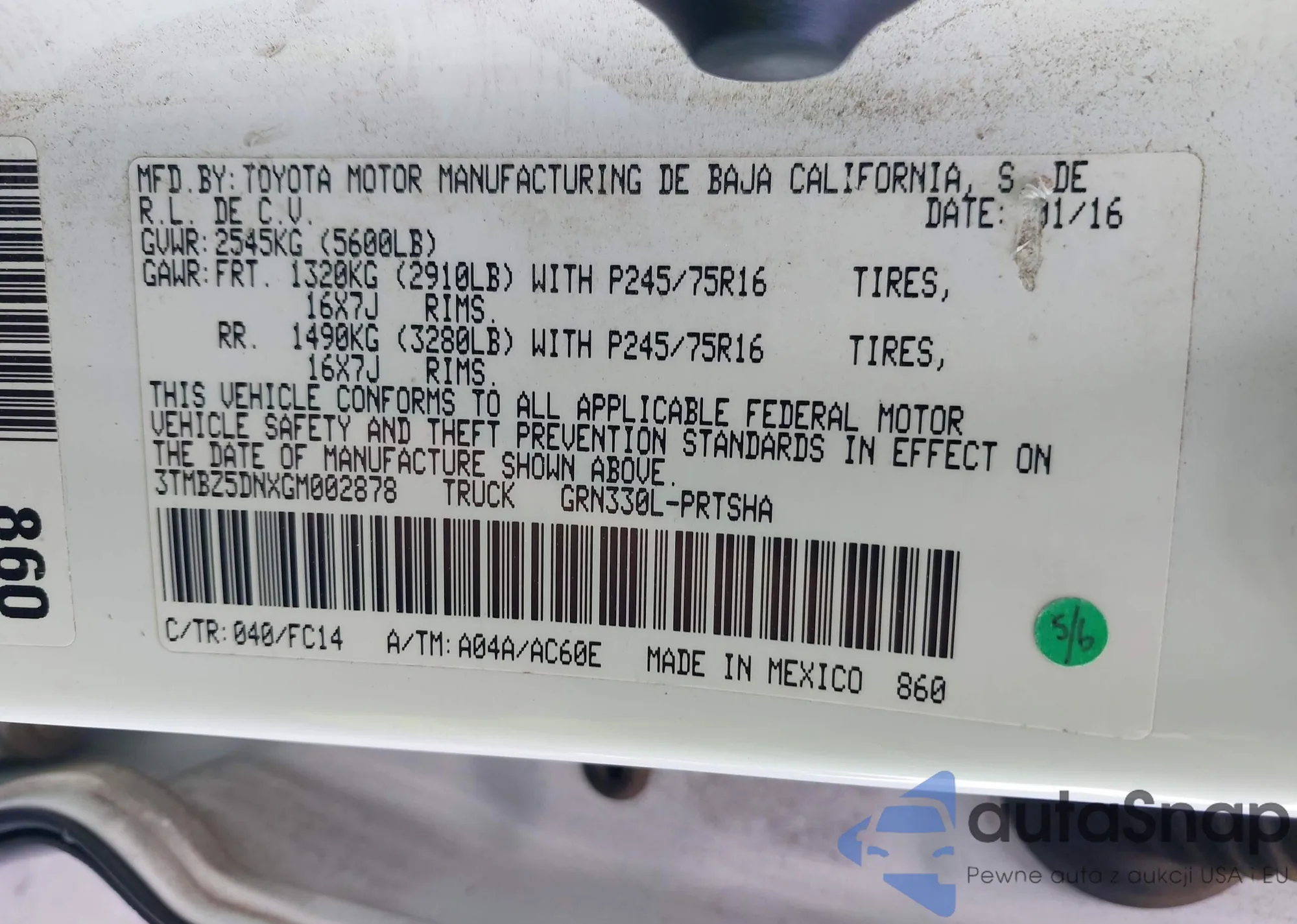 • VIN 3TMBZ5DNXGM002878