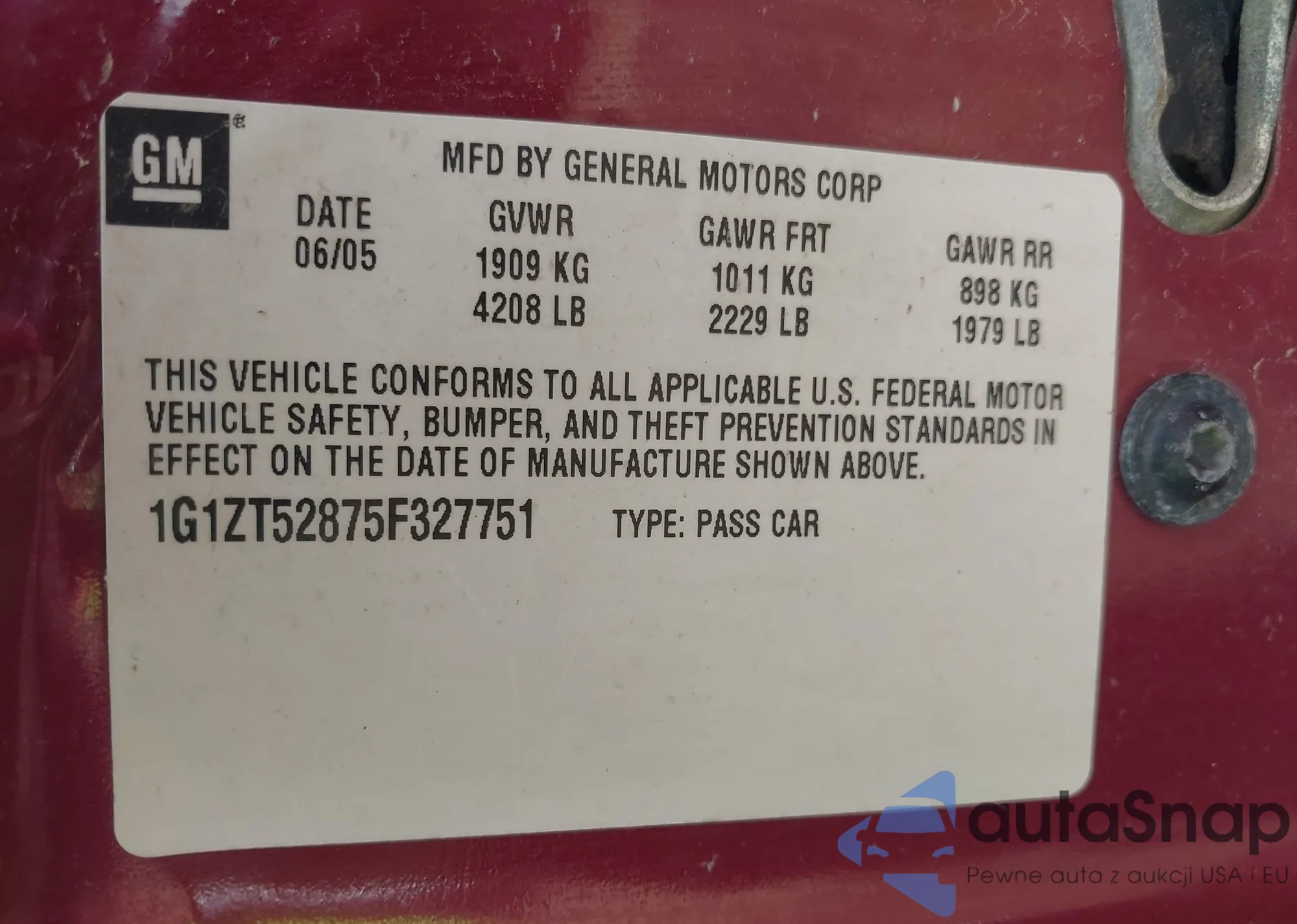 • VIN 1G1ZT52875F327751