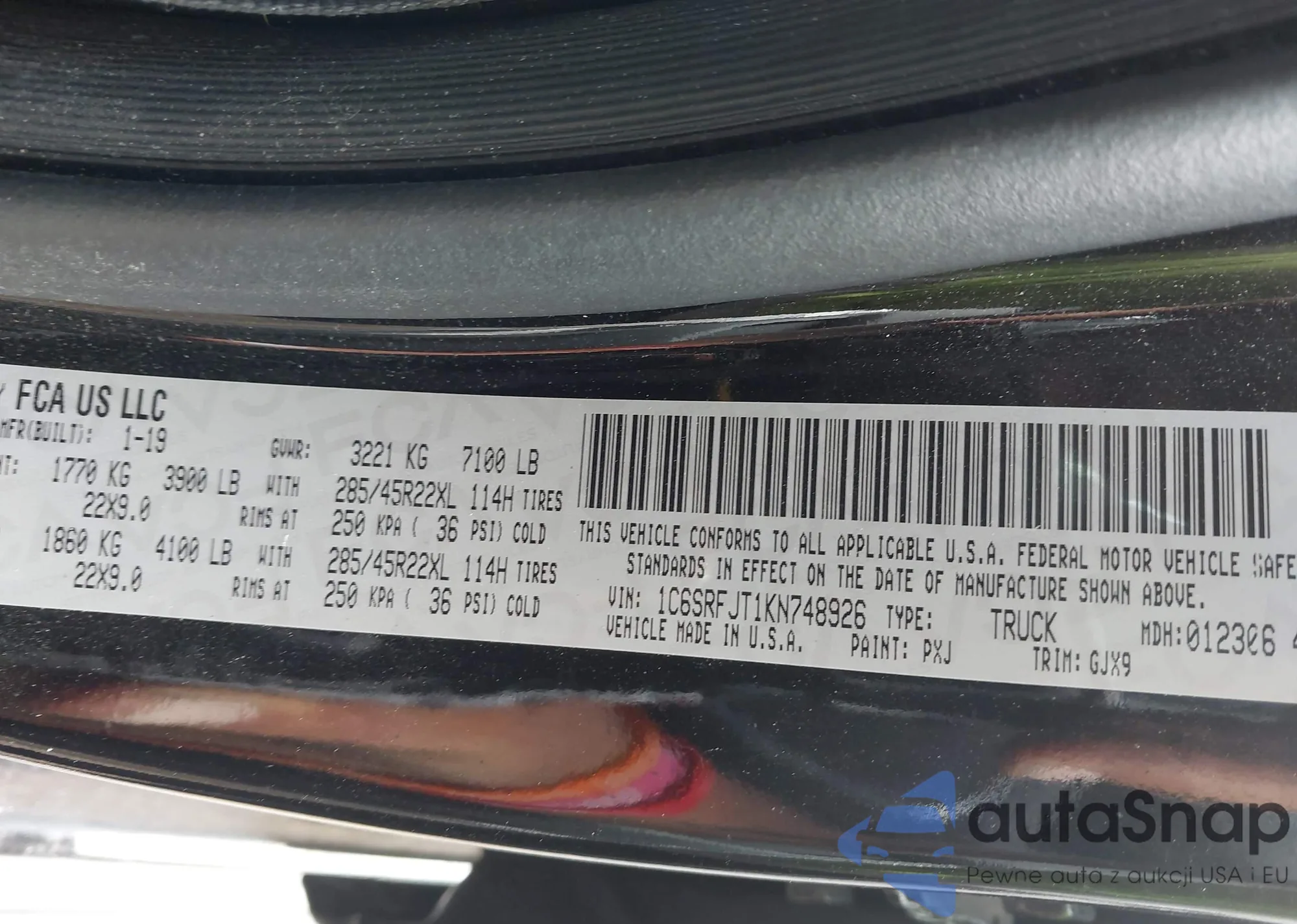 • VIN 1C6SRFJT1KN748926