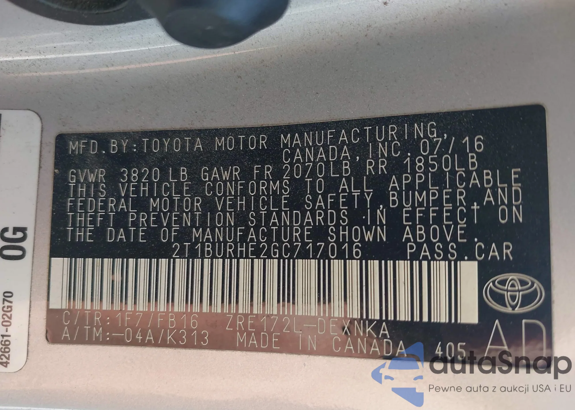 • VIN 2T1BURHE2GC717016