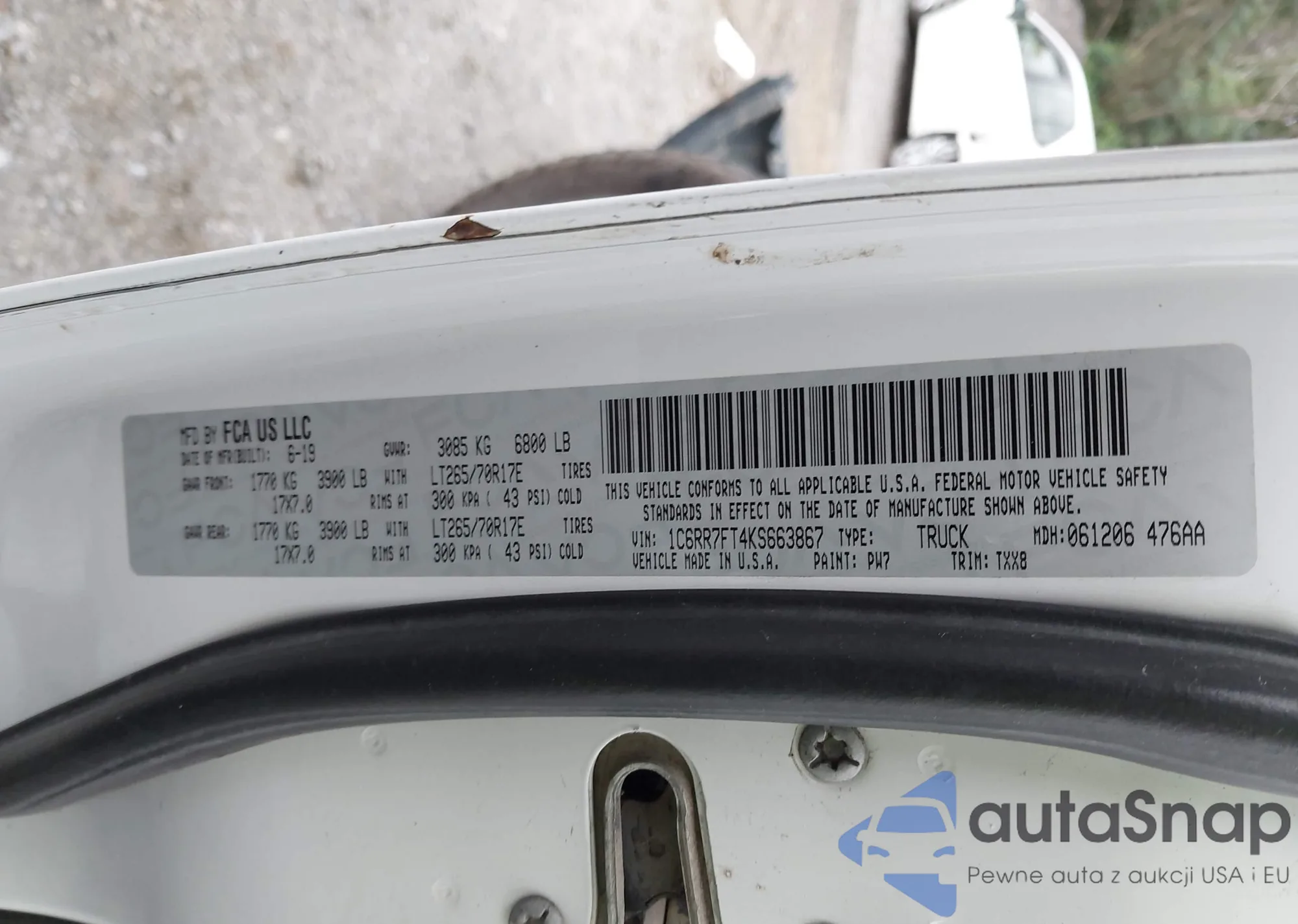 LOT: 43265176 VIN: 1C6SRFJT1KN748926