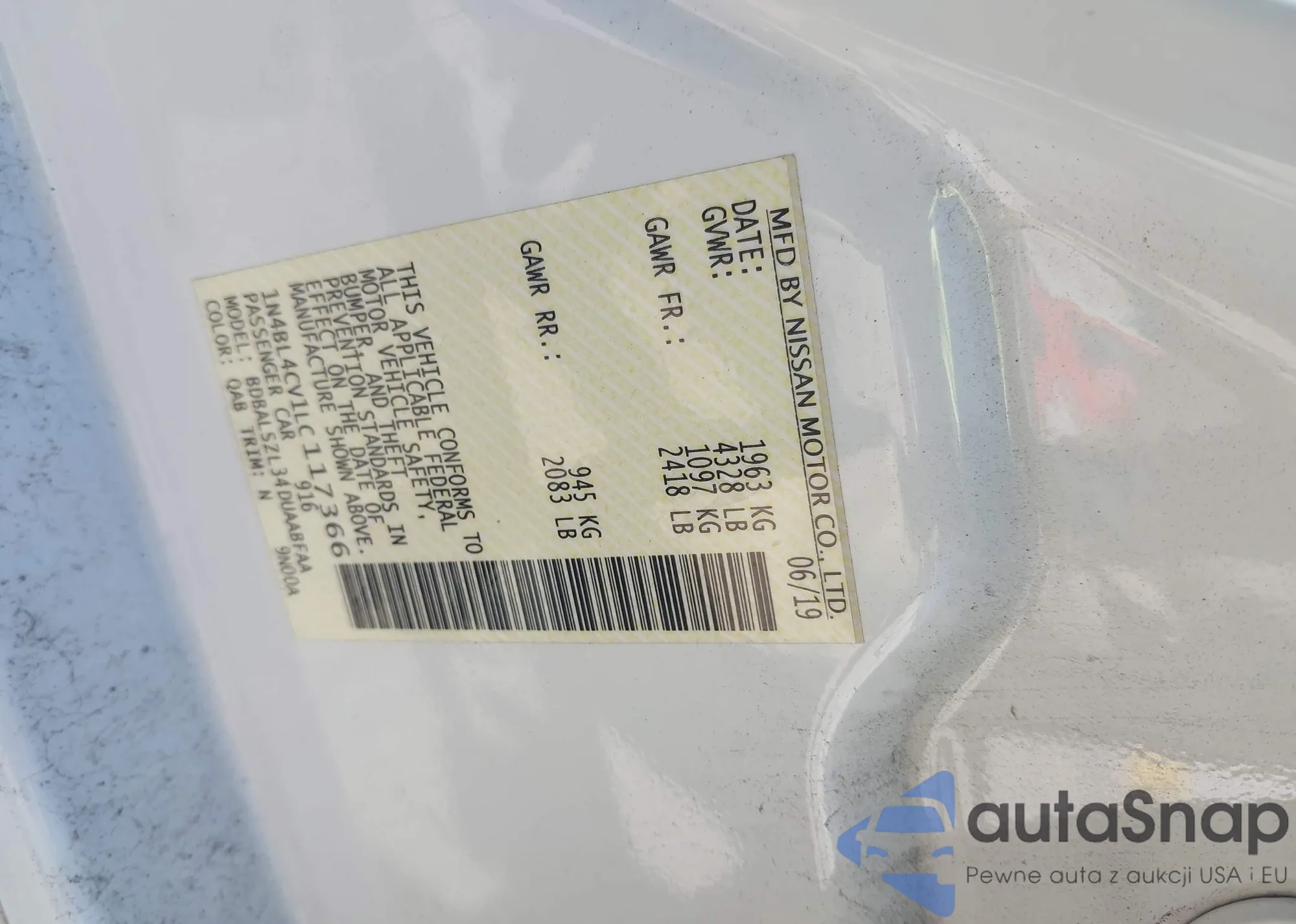 • VIN 1N4BL4CV1LC117366