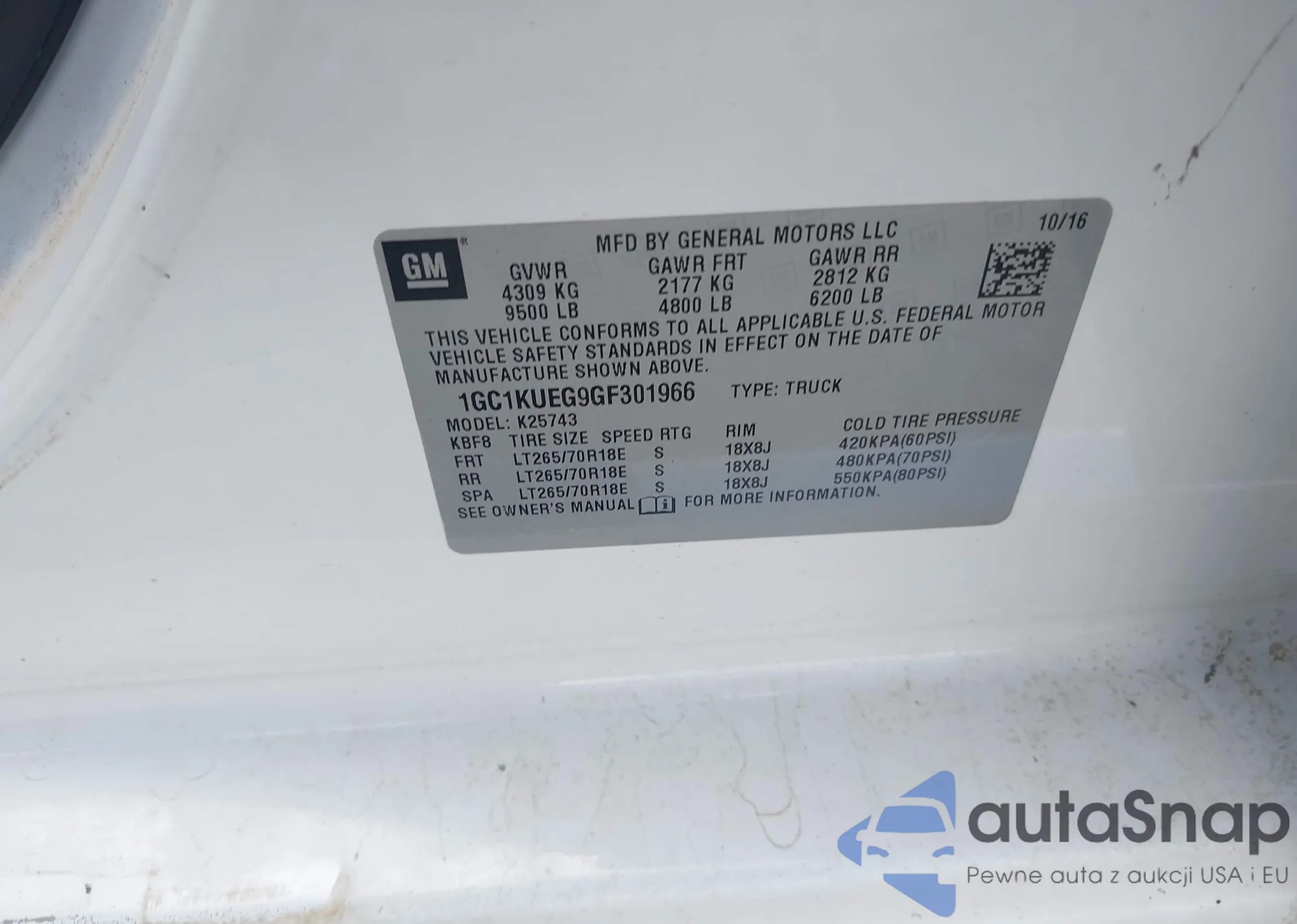 LOT: 43285197 VIN: 1GC1KUEG9GF301966
