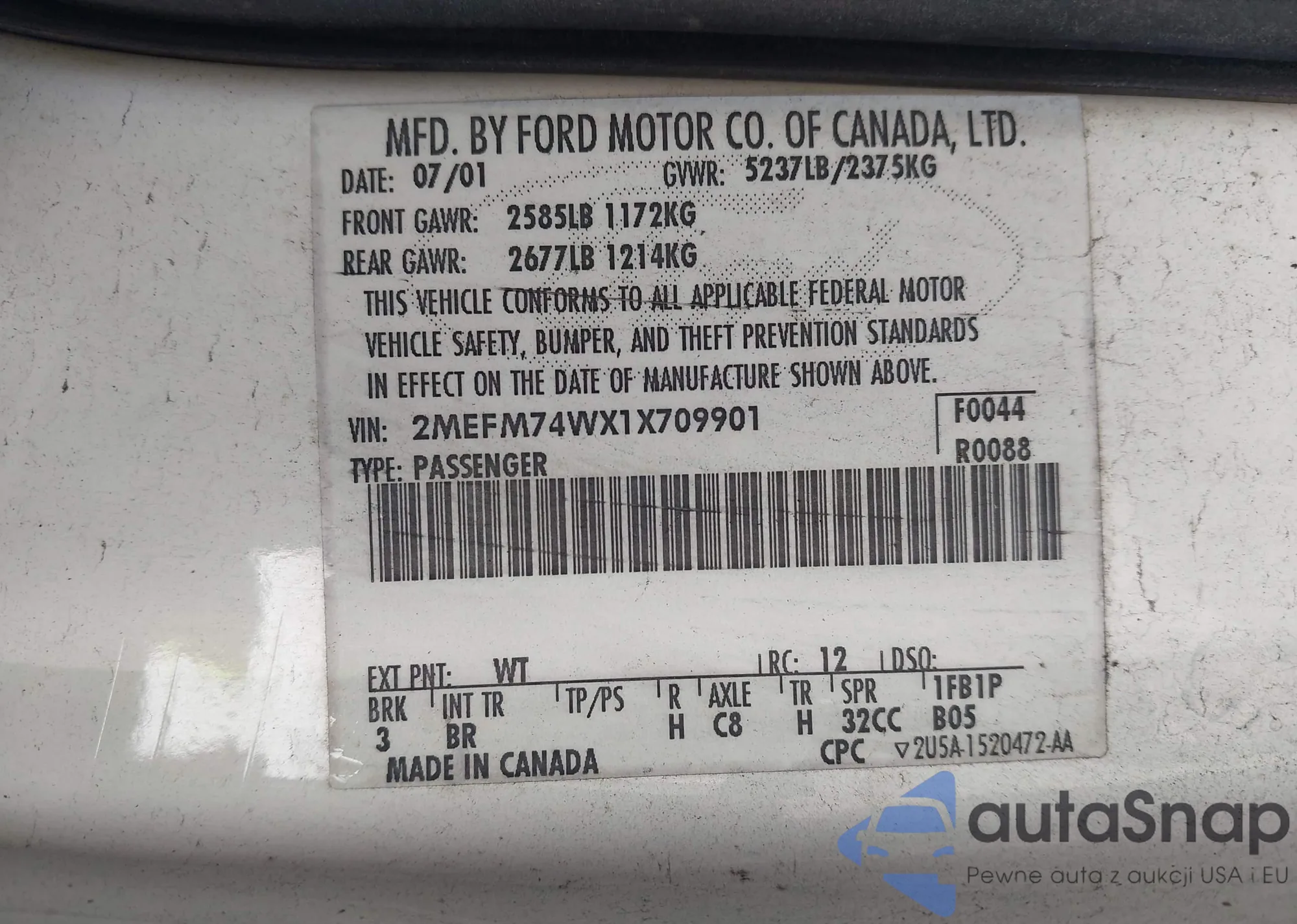 • VIN 2MEFM74WX1X709901