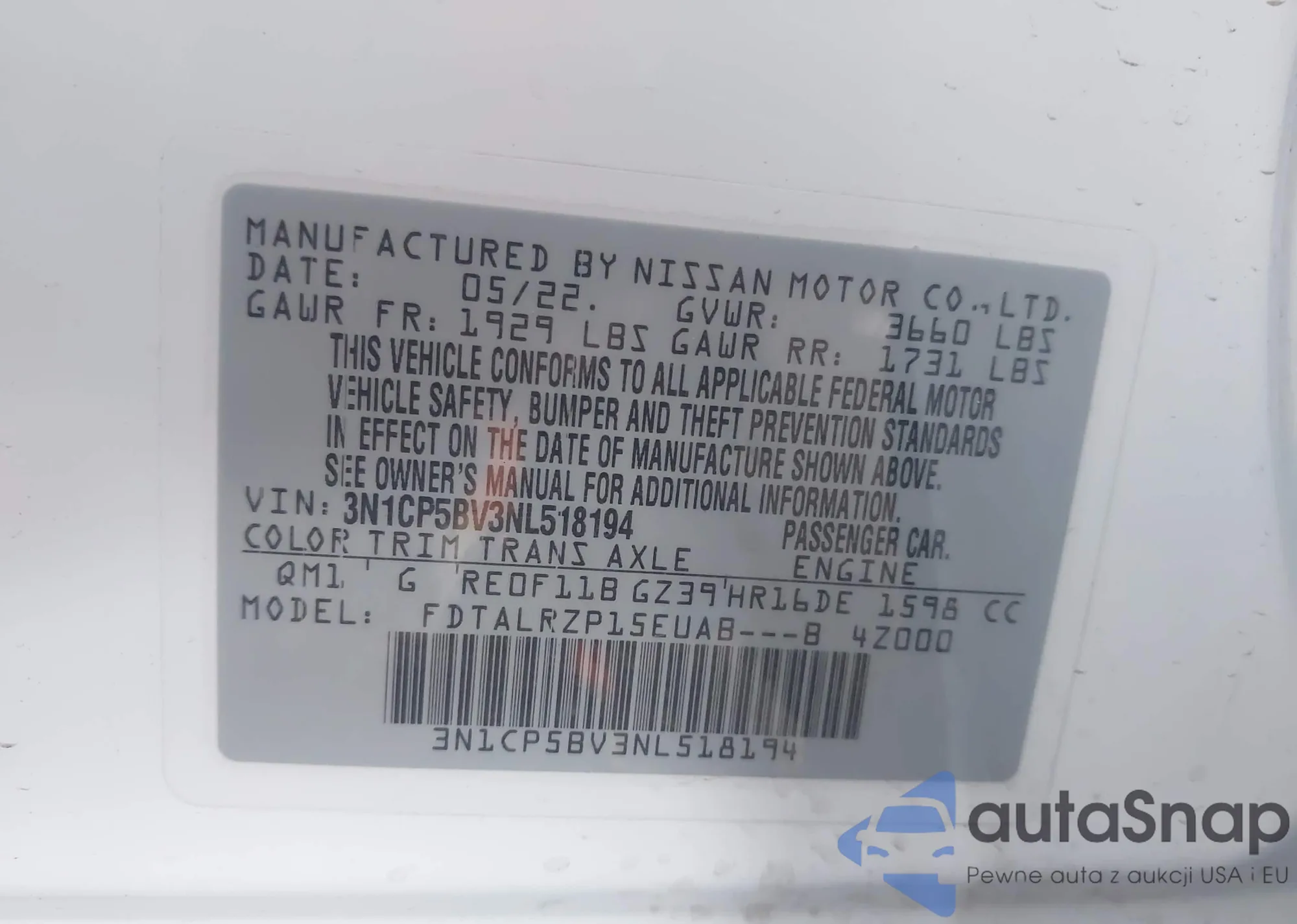 • VIN 3N6CM0KN5JK690085