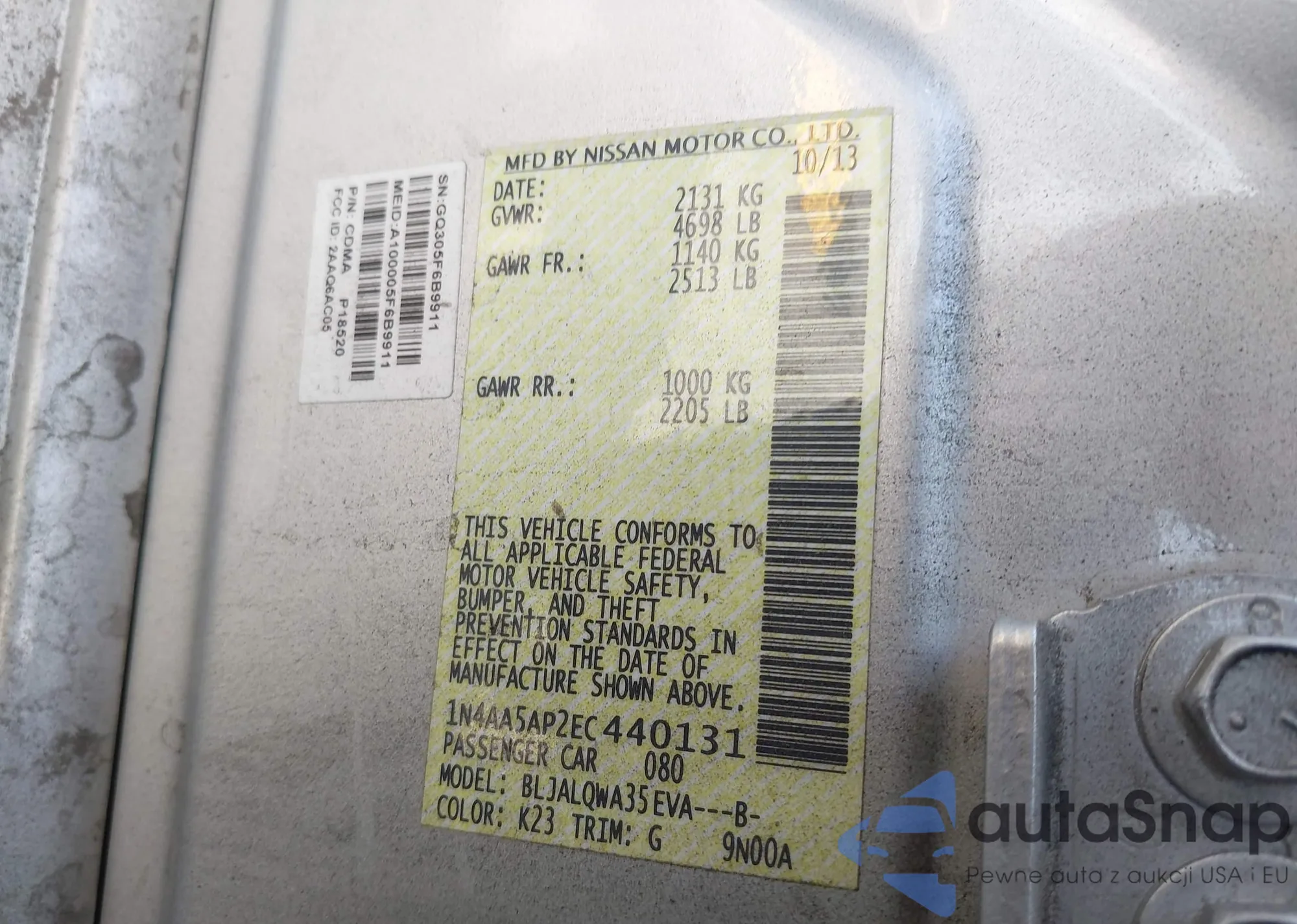 • VIN 1N4AA5AP2EC440131