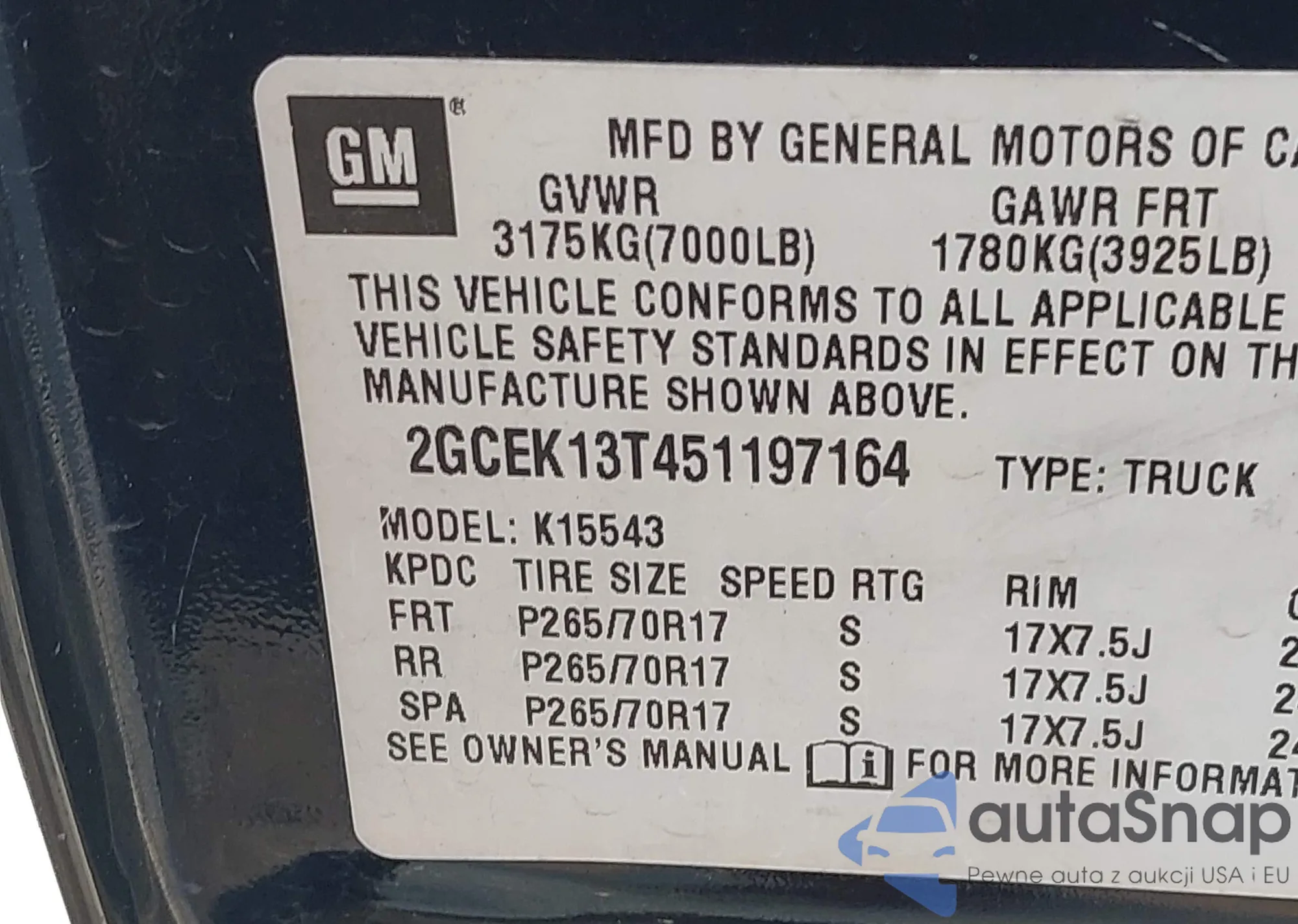 • VIN 2GCEK13T451197164
