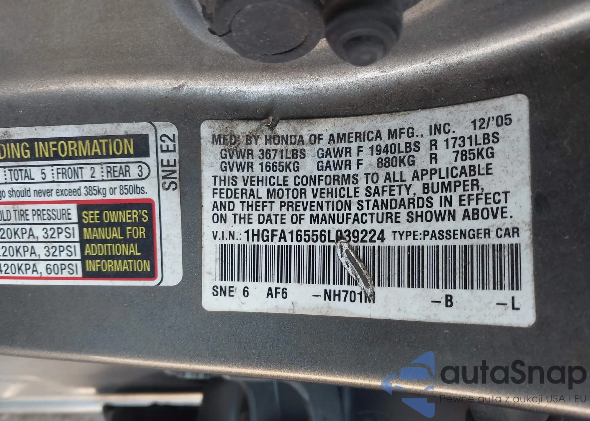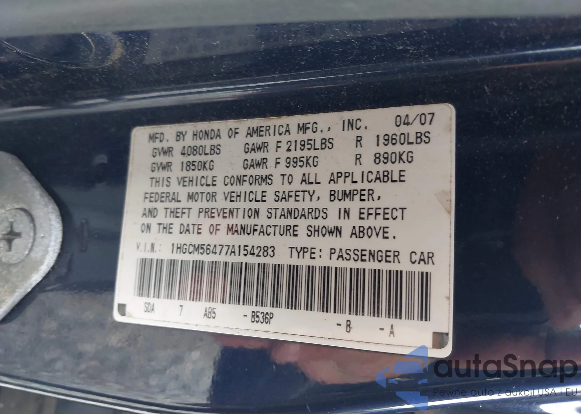 LOT: 43330926 VIN: 1HGCM66503A076762