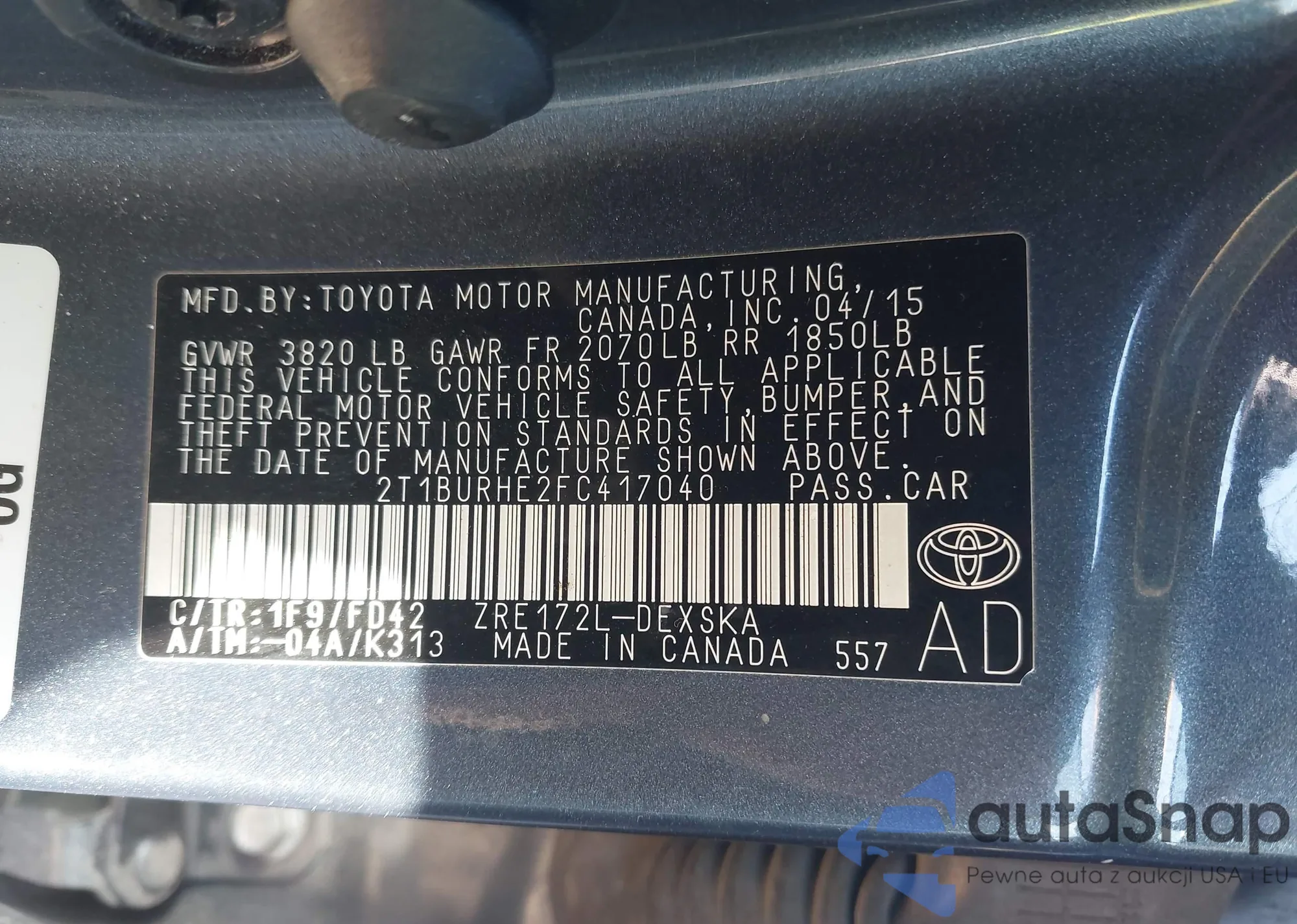 • VIN 2T1BURHE2FC417040