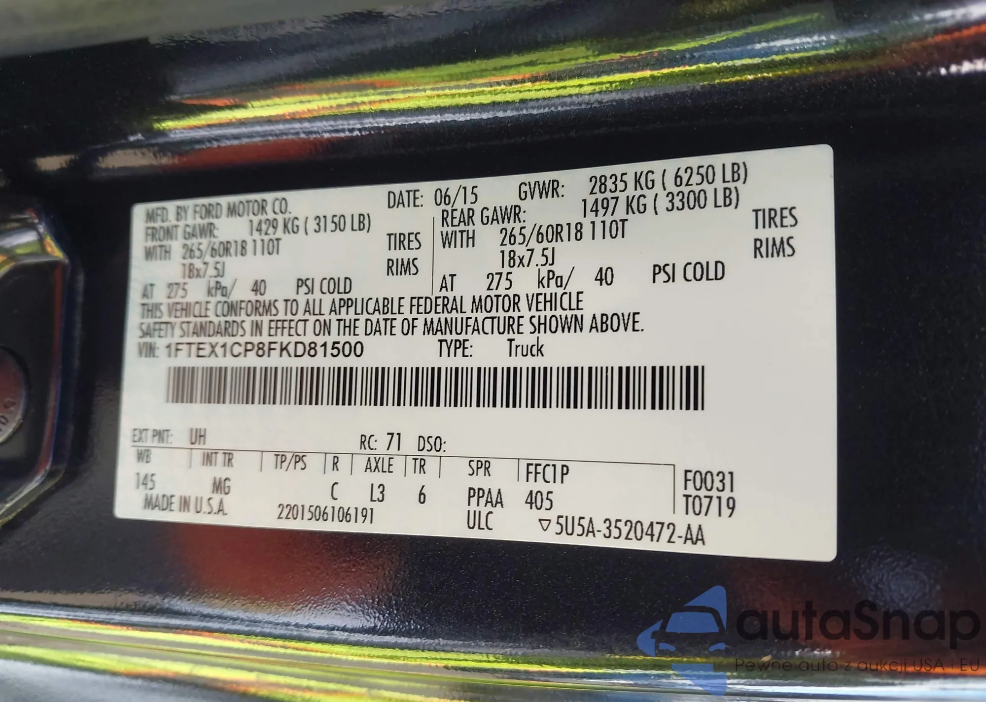 LOT: 43028797 VIN: 1FTEX1CP8FKD81500