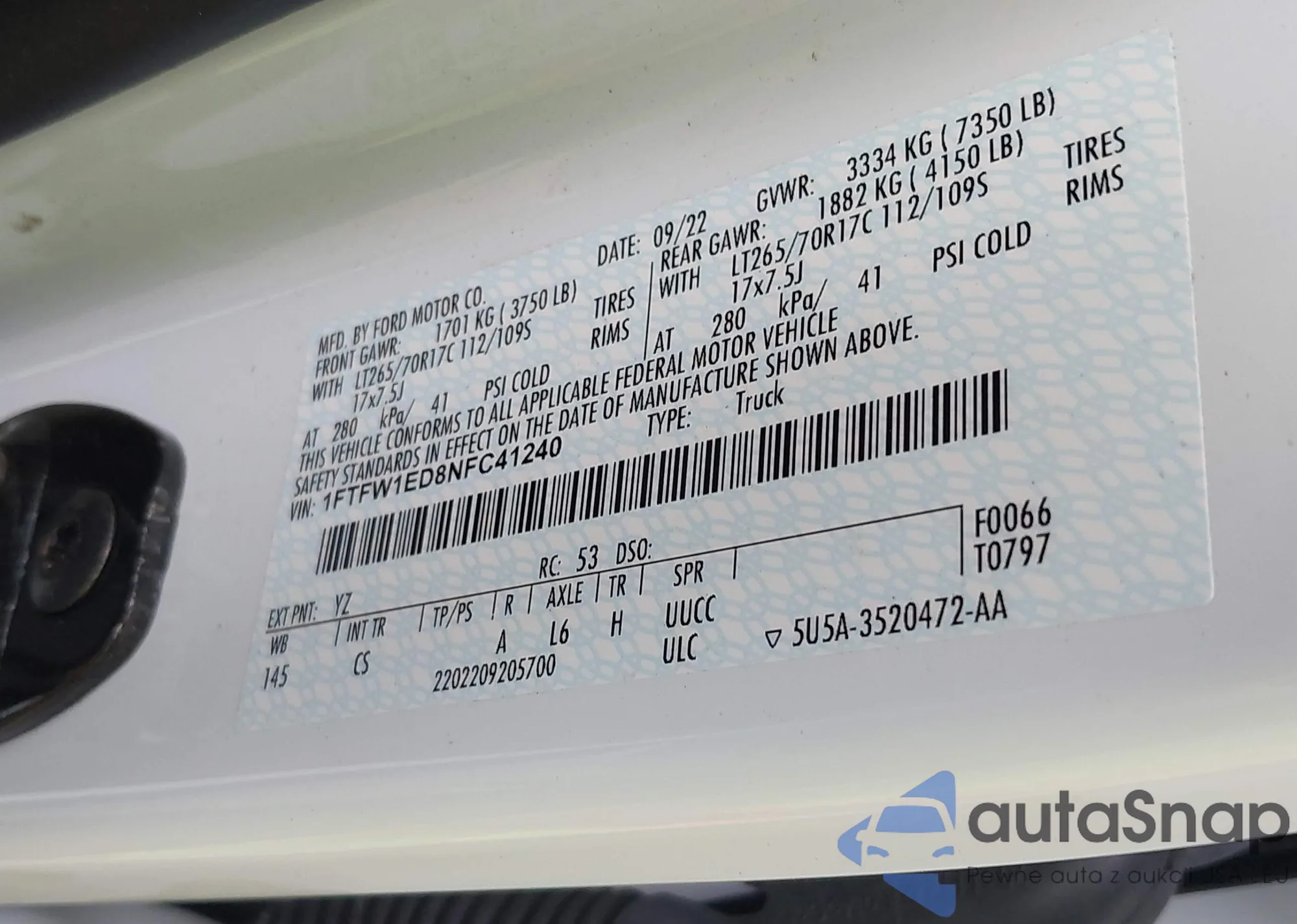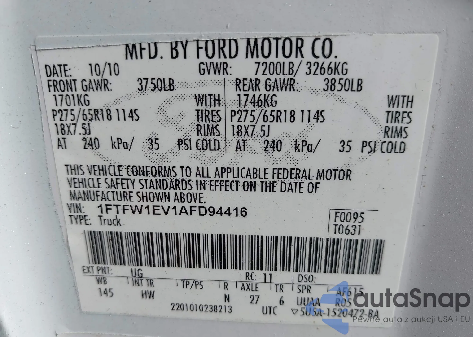 LOT: 43155922 VIN: 1FTEX1E89AFD85093