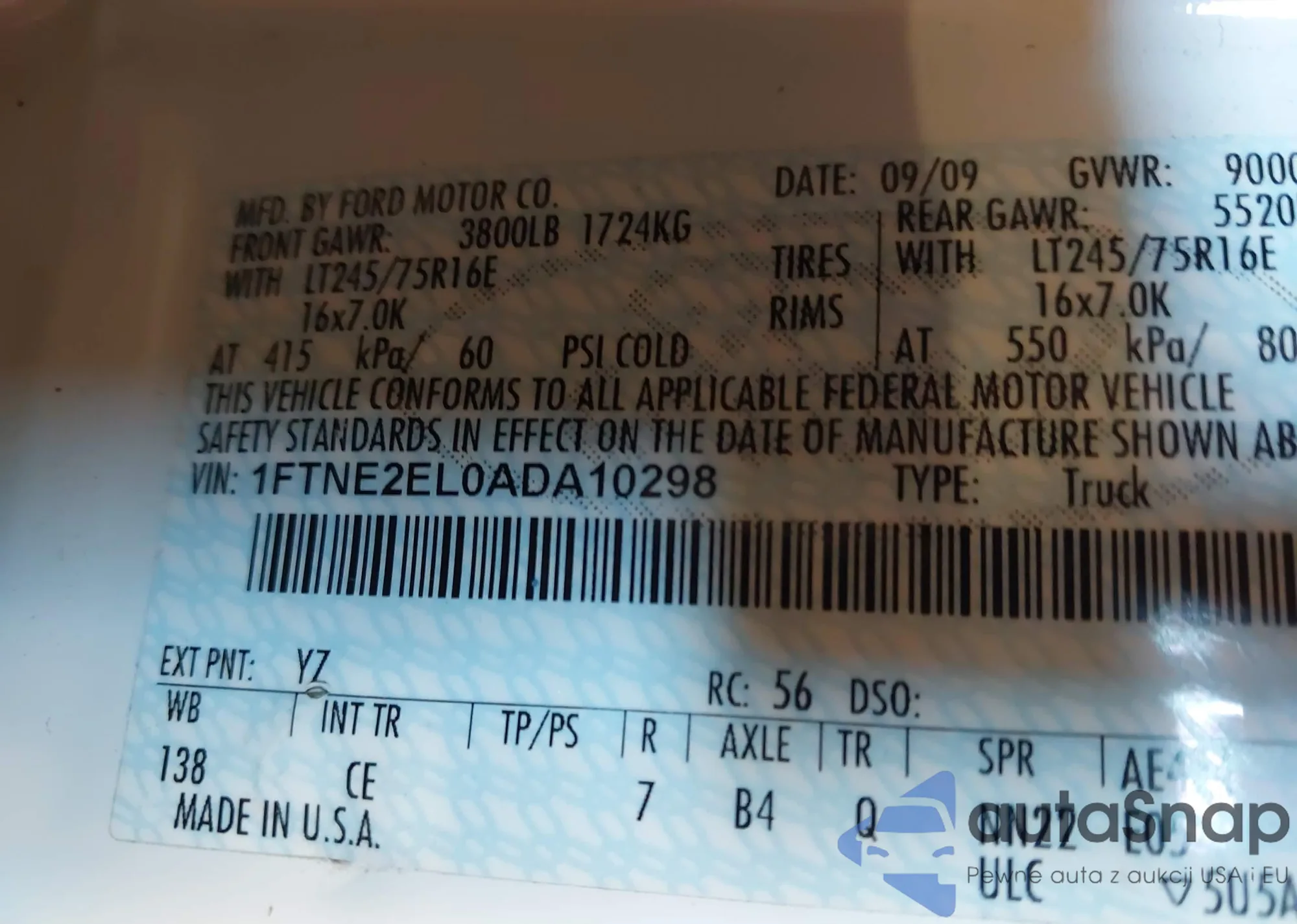 • VIN 1FTNE2EL0ADA10298