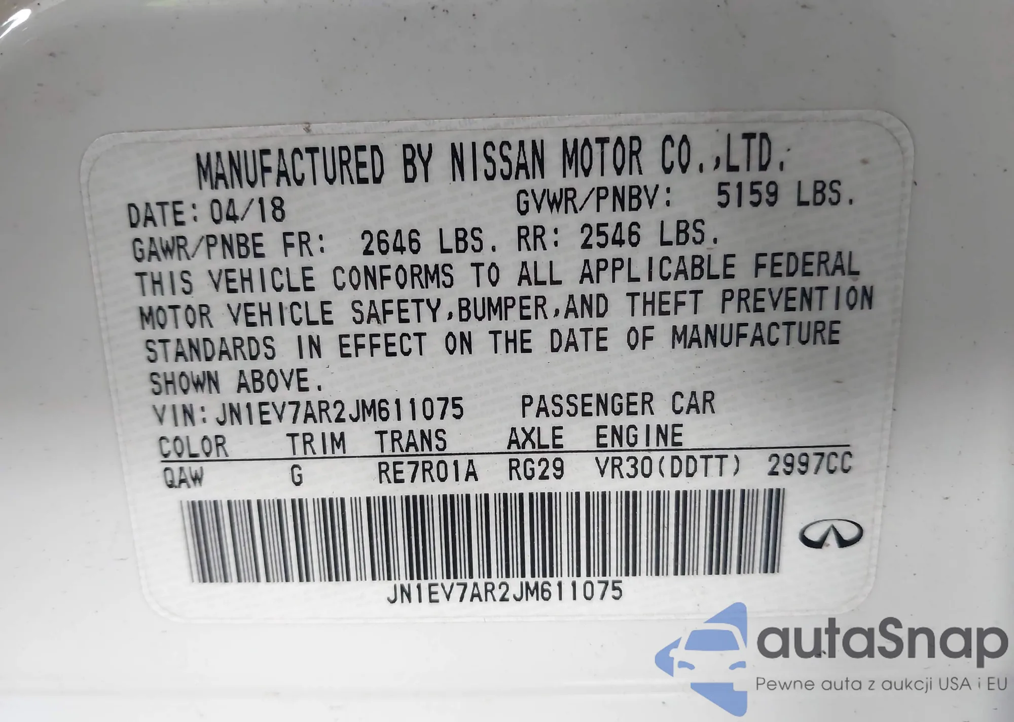 LOT: 43440643 VIN: JN1EV7AR2JM611075