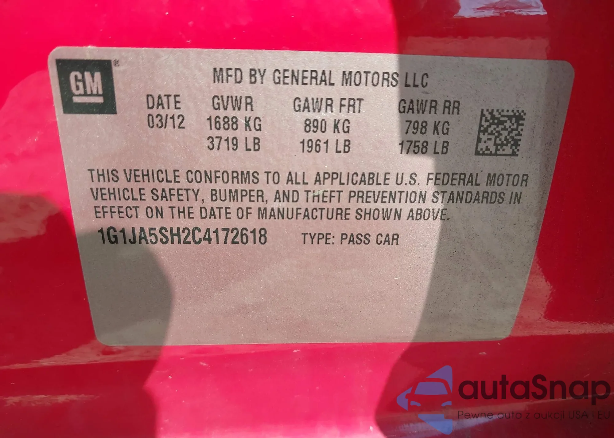 • VIN 1G1JA5SH2C4172618